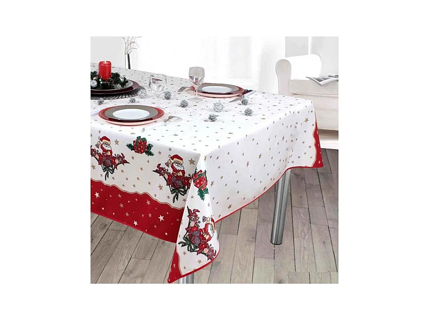 Nappe de Noël motifs Père Noël ou Cloche - Anti tâches