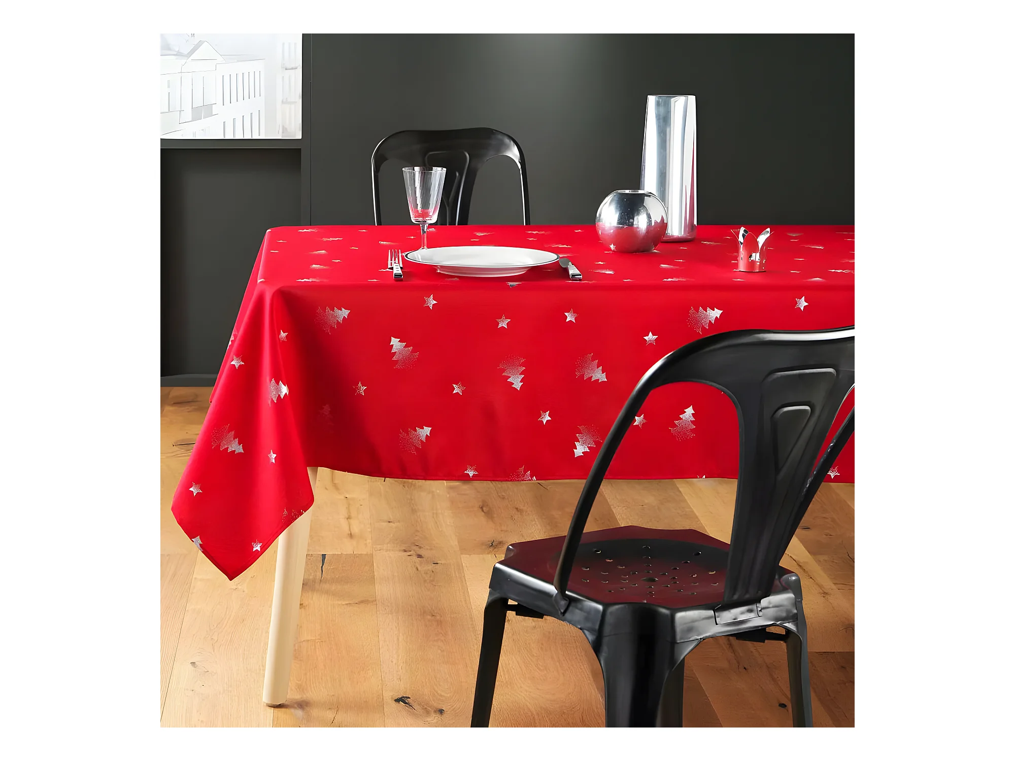 Nappe de Noël Rectangle - Tissu Antitache / Imperméable – Sapin argent – Différentes tailles