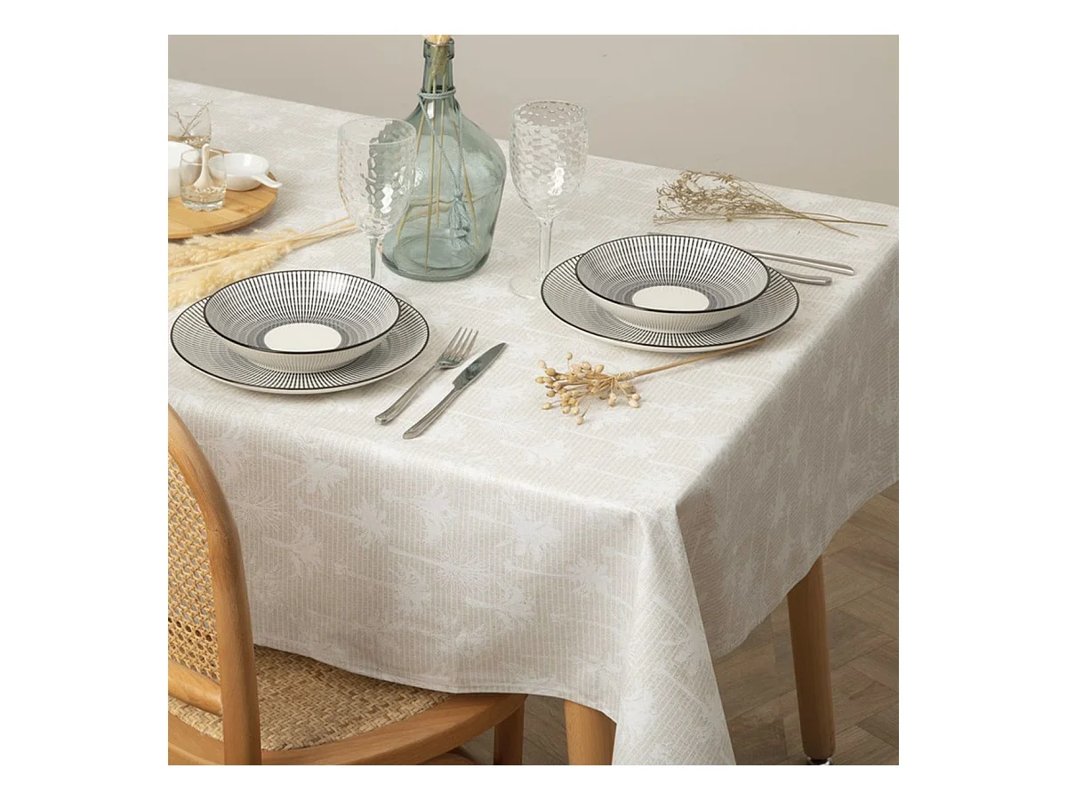 Nappe en polycoton Beige et Blanc 150 x 250 cm