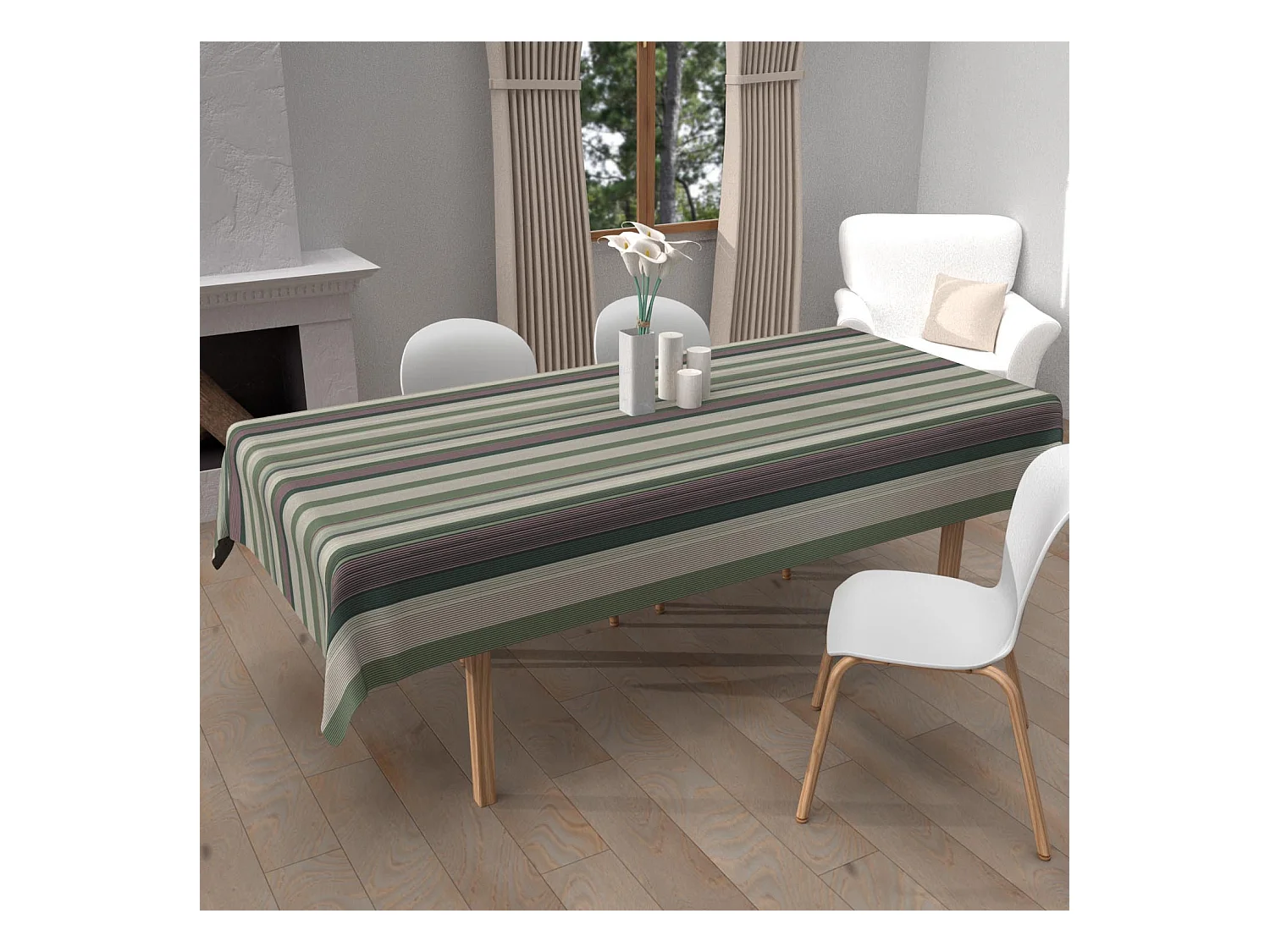 Nappe Antitache Imprimée "Thais" 150x300cm Vert