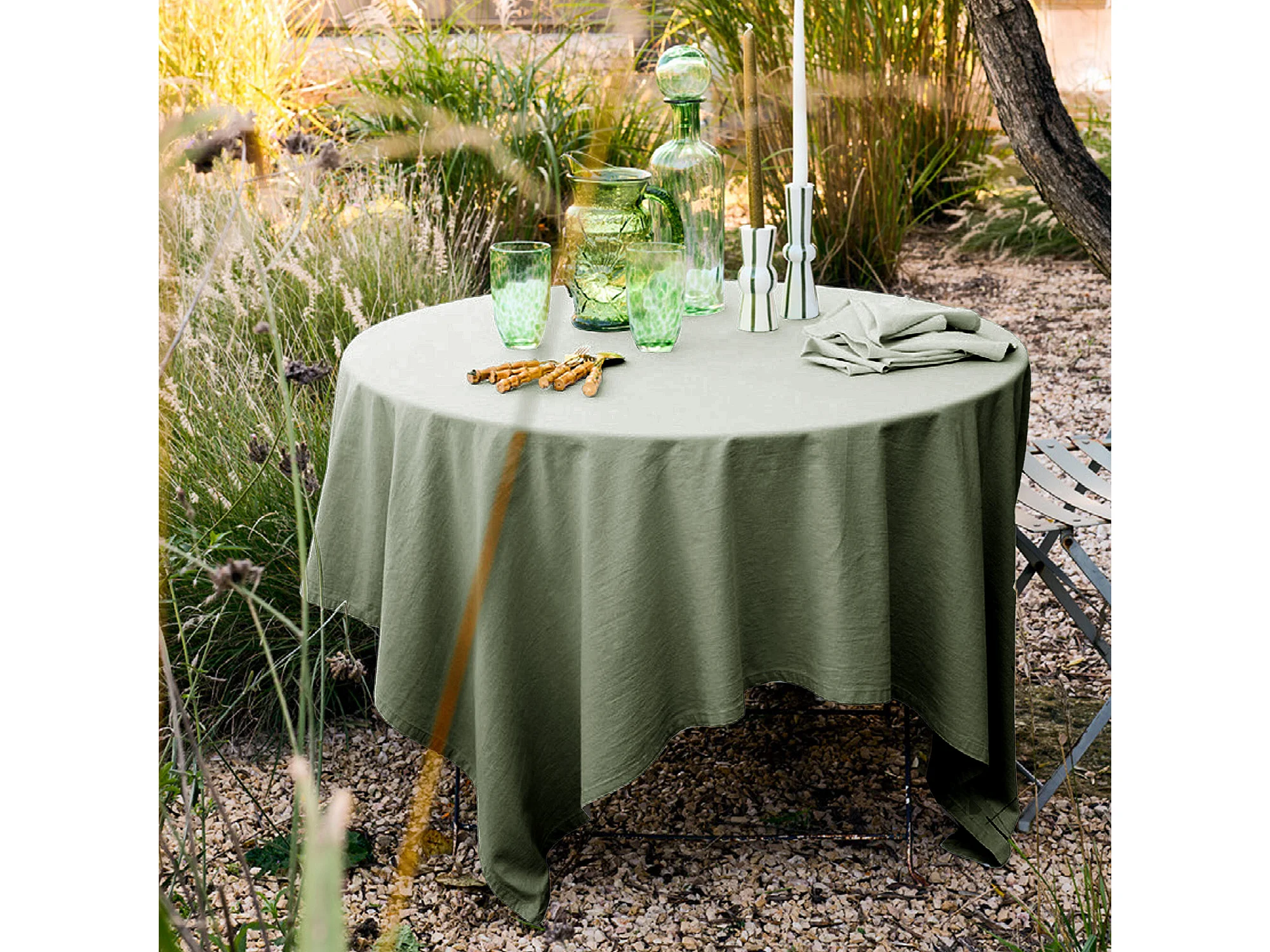 Nappe rectangulaire lin et coton 170X300 cm MATTIS vert mousse