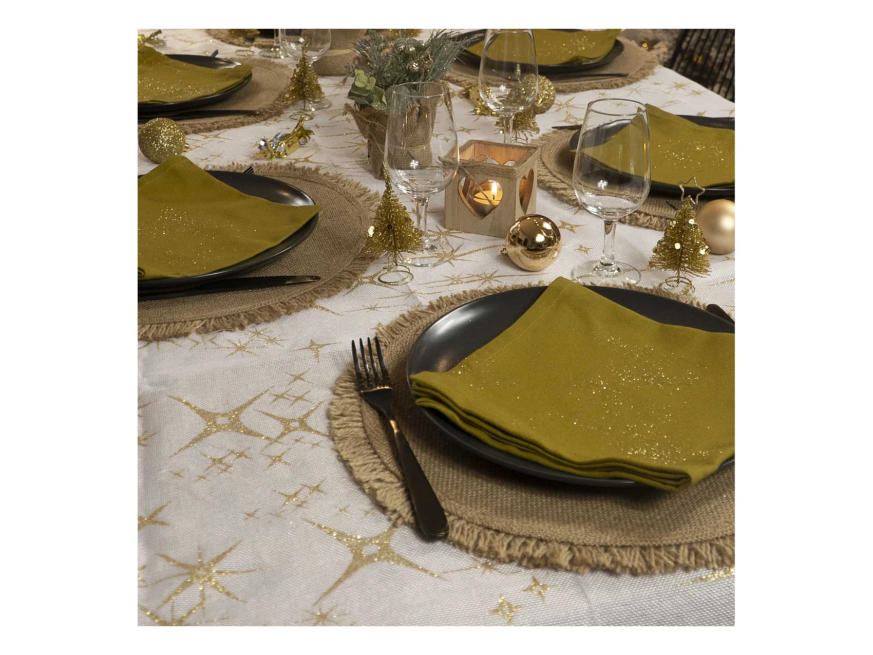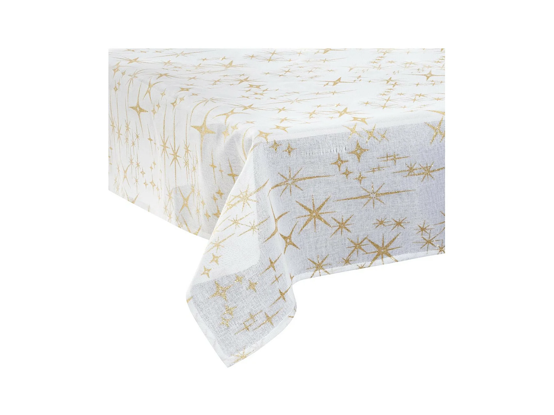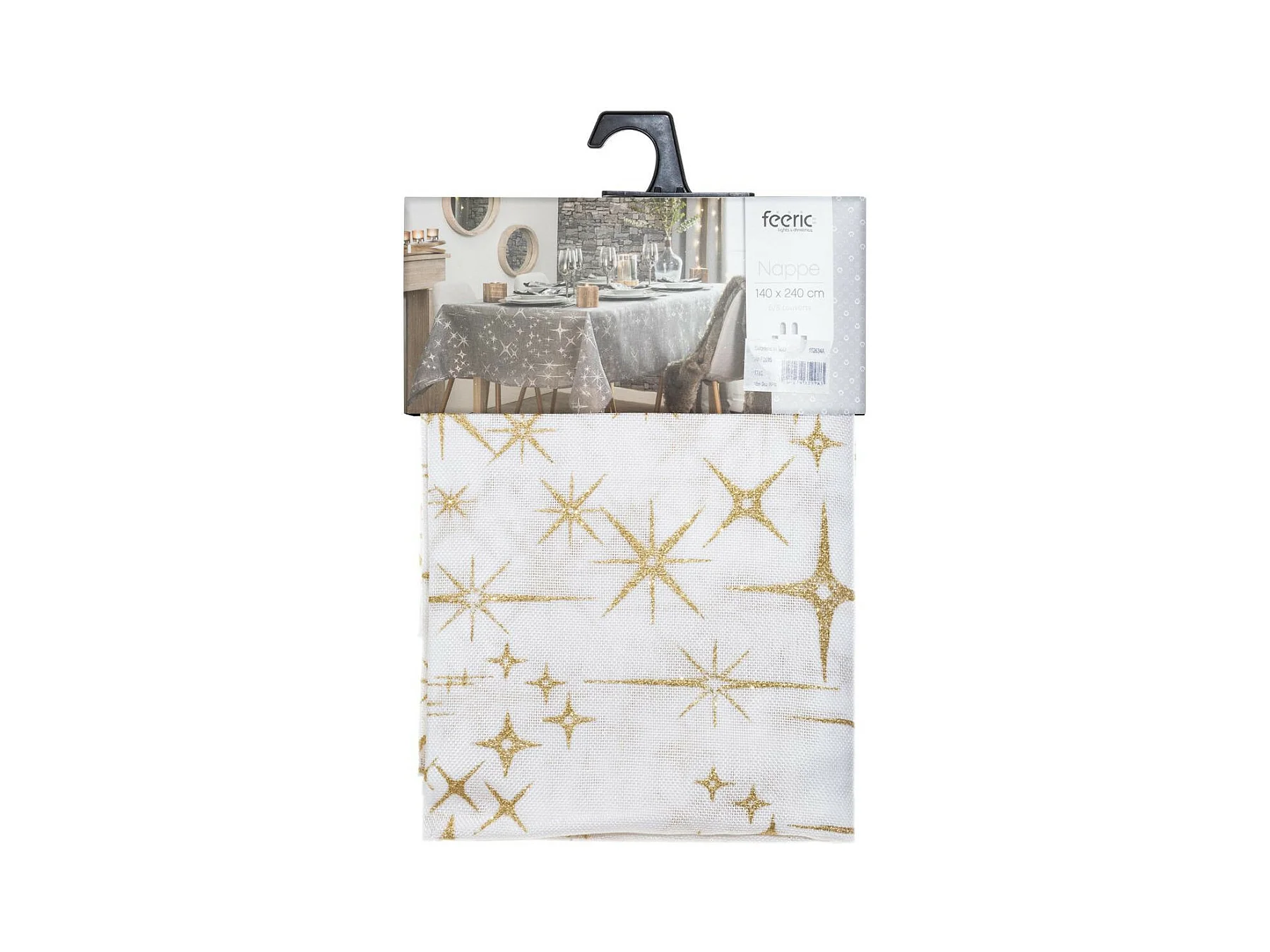 Nappe Motif Étoiles "Colorama" 140x360cm Blanc & Or