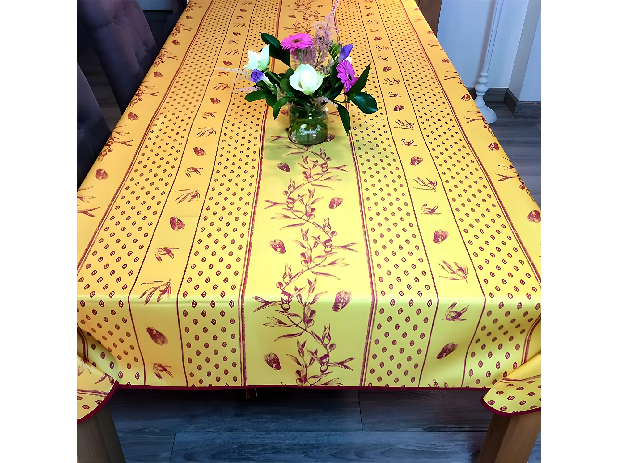 Nappe Rectangle Provençale Anti-Tâches - Cigale Olive Jaune Rouge