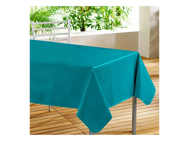 Nappe enduite avec traitement antitache Bleu Paon rectangulaire 145 x 240 cm