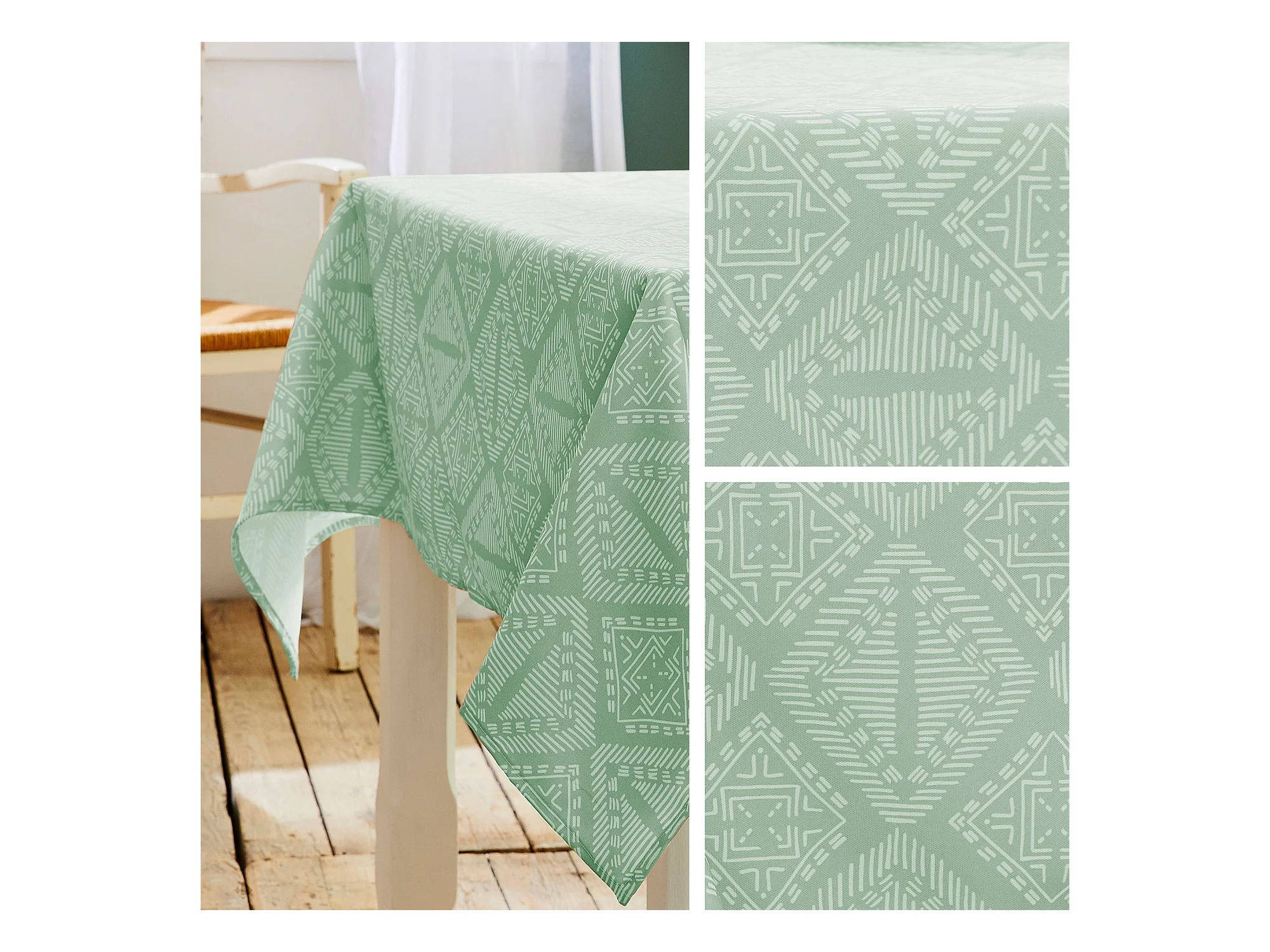 Nappe rectangle 150x200 cm imprimée 100% polyester BOHO géométrique vert sauge