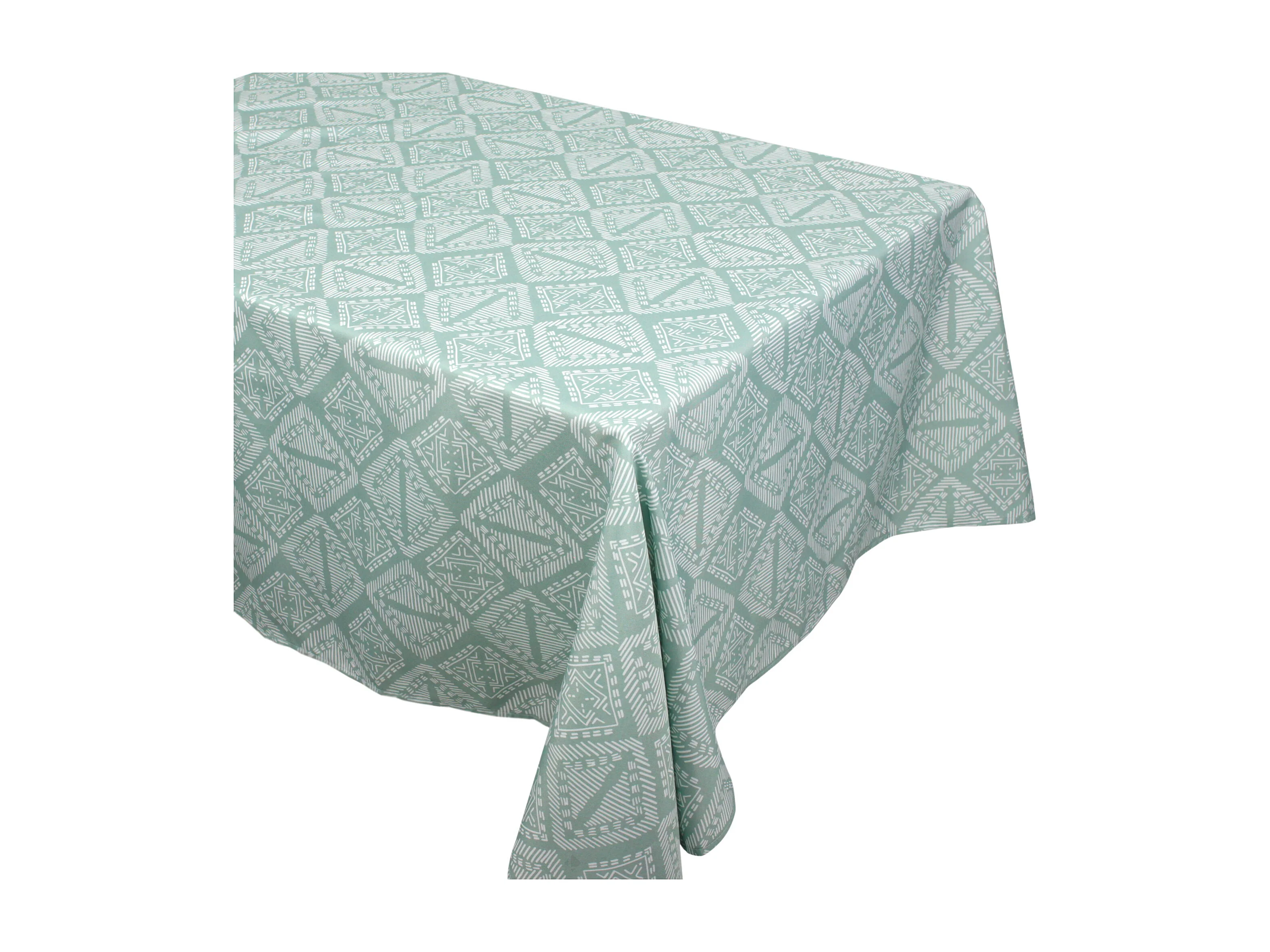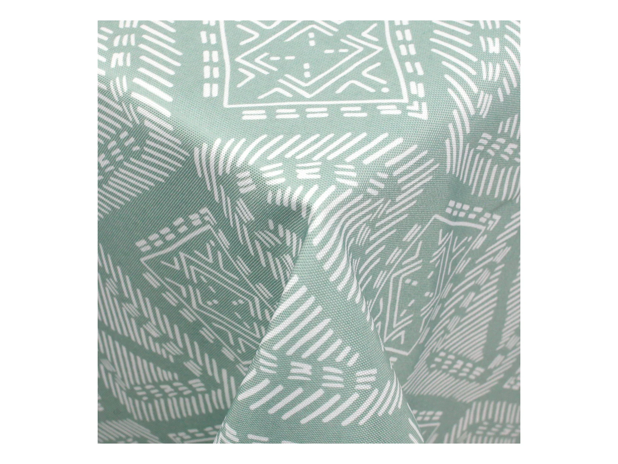 Nappe rectangle 150x300 cm imprimée 100% polyester BOHO géométrique vert sauge