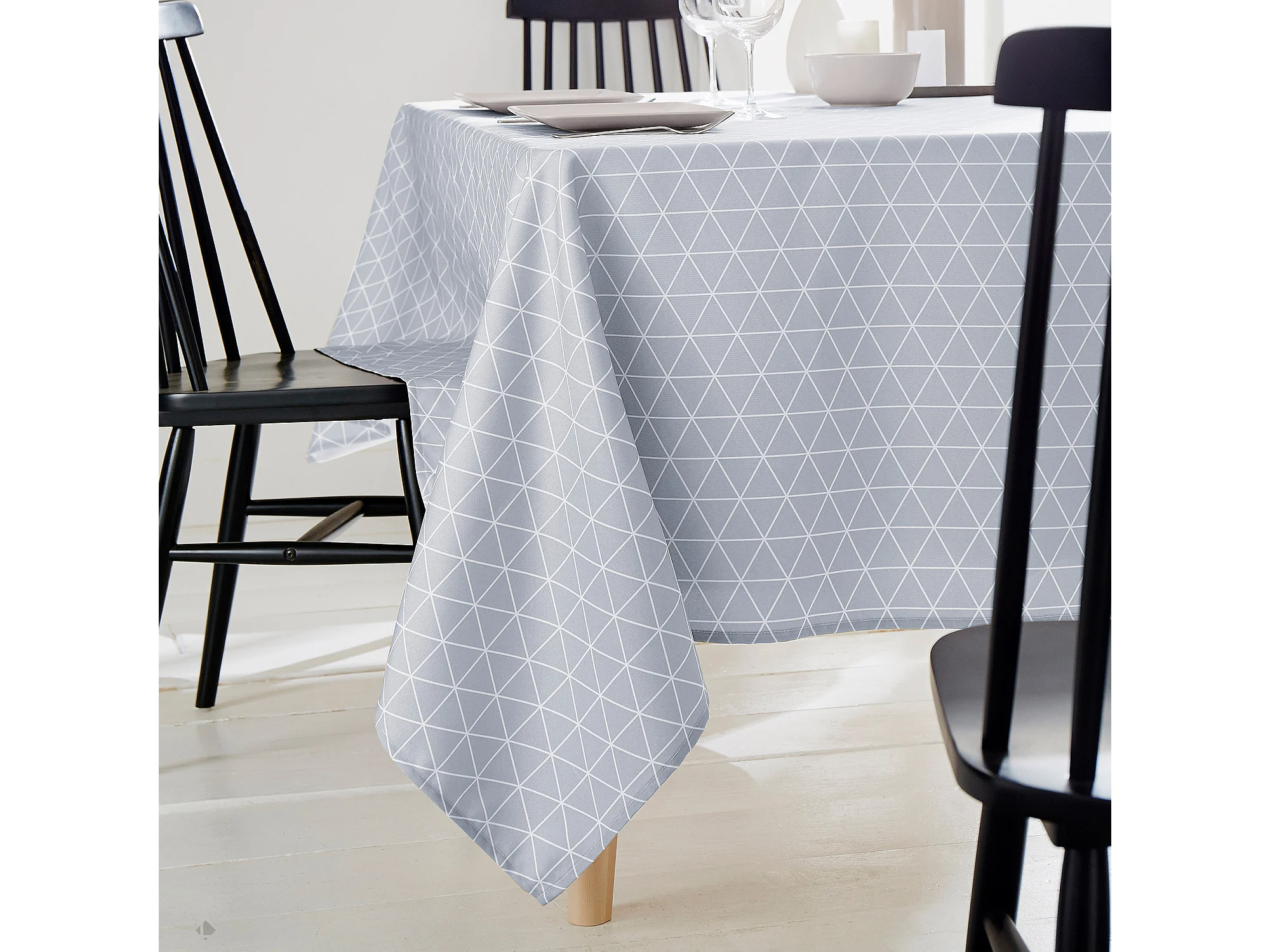 Nappe carrée 170x170 cm imprimée 100% polyester PACO géométrique bleu nuage
