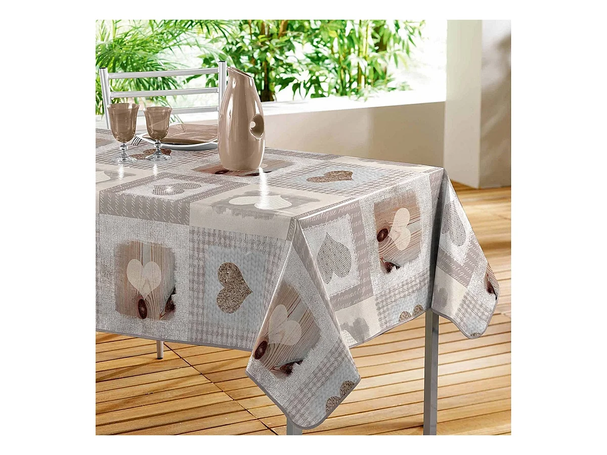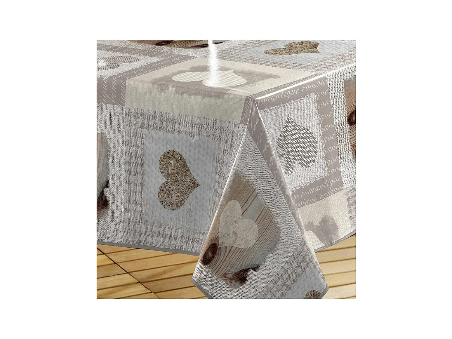 Nappe Toile Cirée "Cosy Coeur" 140x240cm Gris