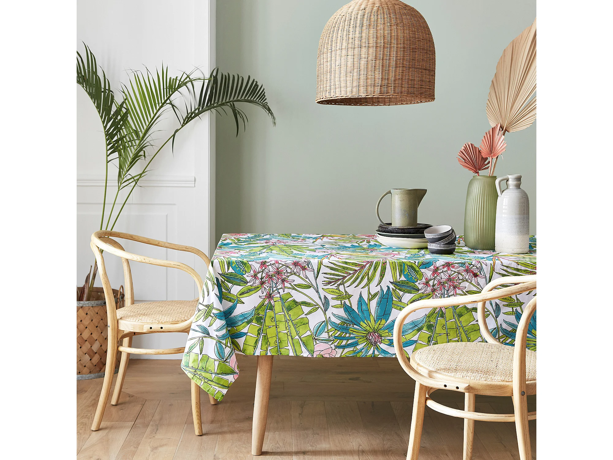 Nappe ronde 170 cm BAHIA bleu Paon coton + enduction acrylique