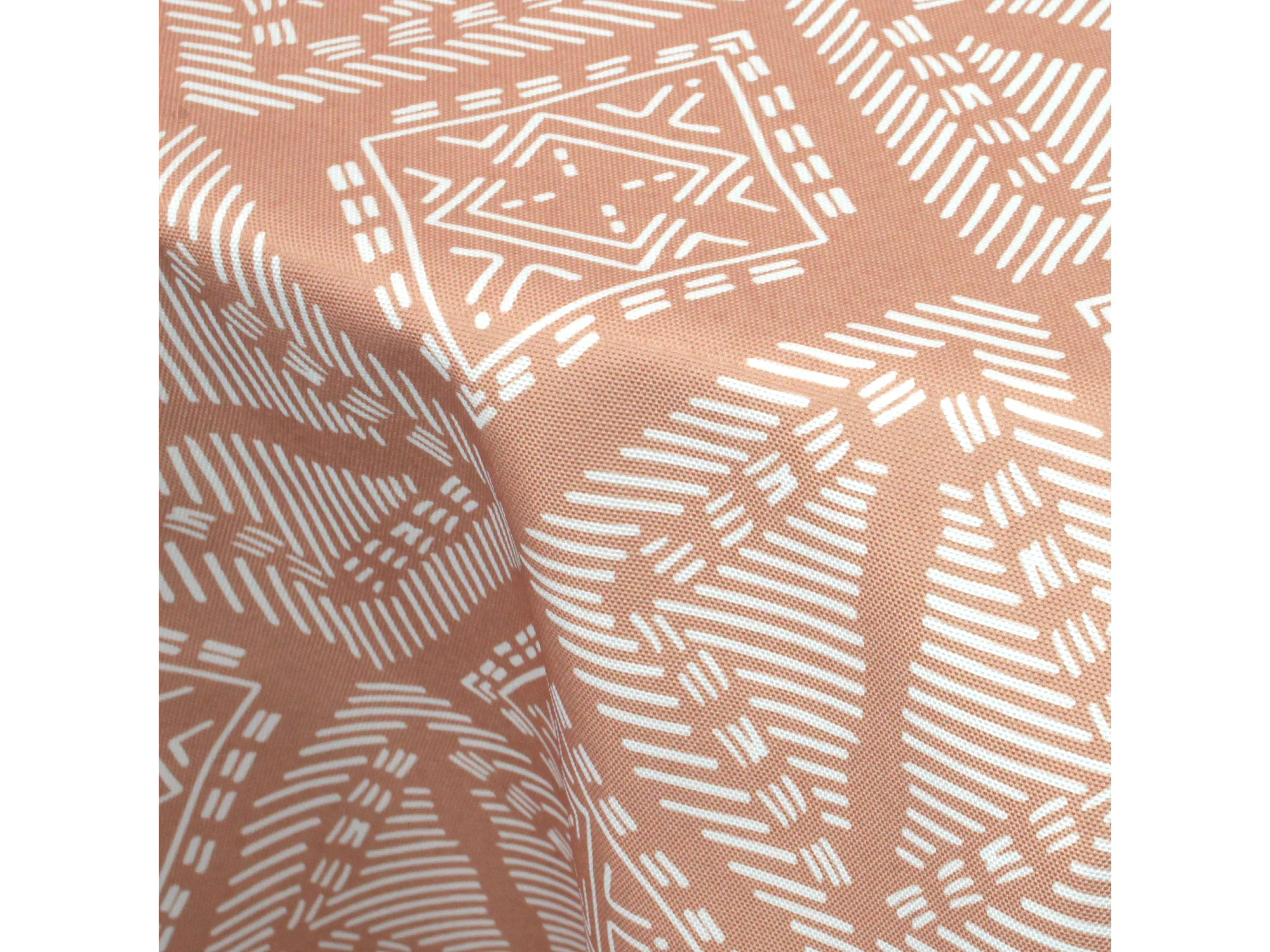 Nappe ronde 180 cm imprimée 100% polyester BOHO géométrique marron sienne