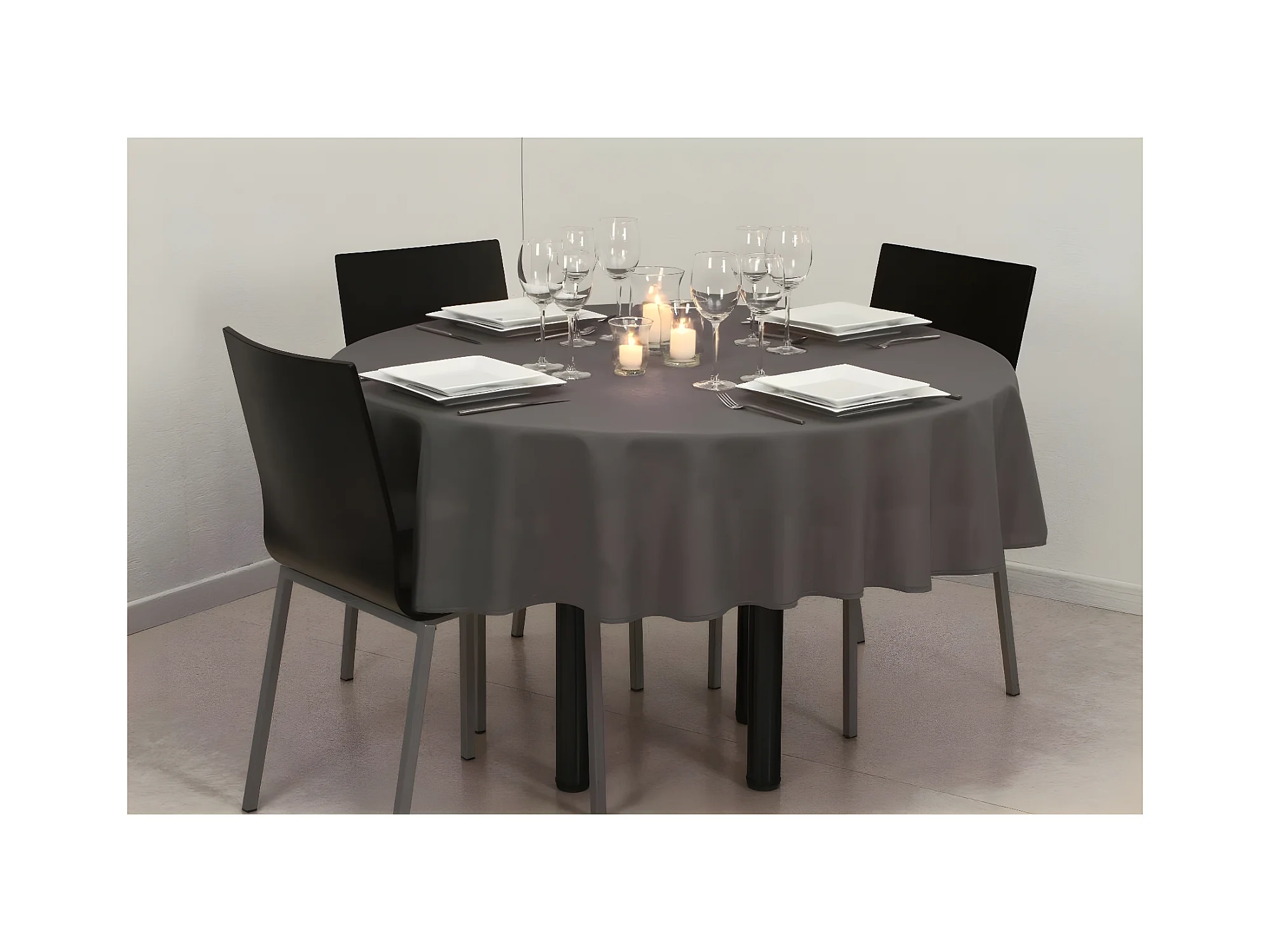 Nappe anti-tâches ronde 180 cm ALIX anthracite, par Soleil d'Ocre