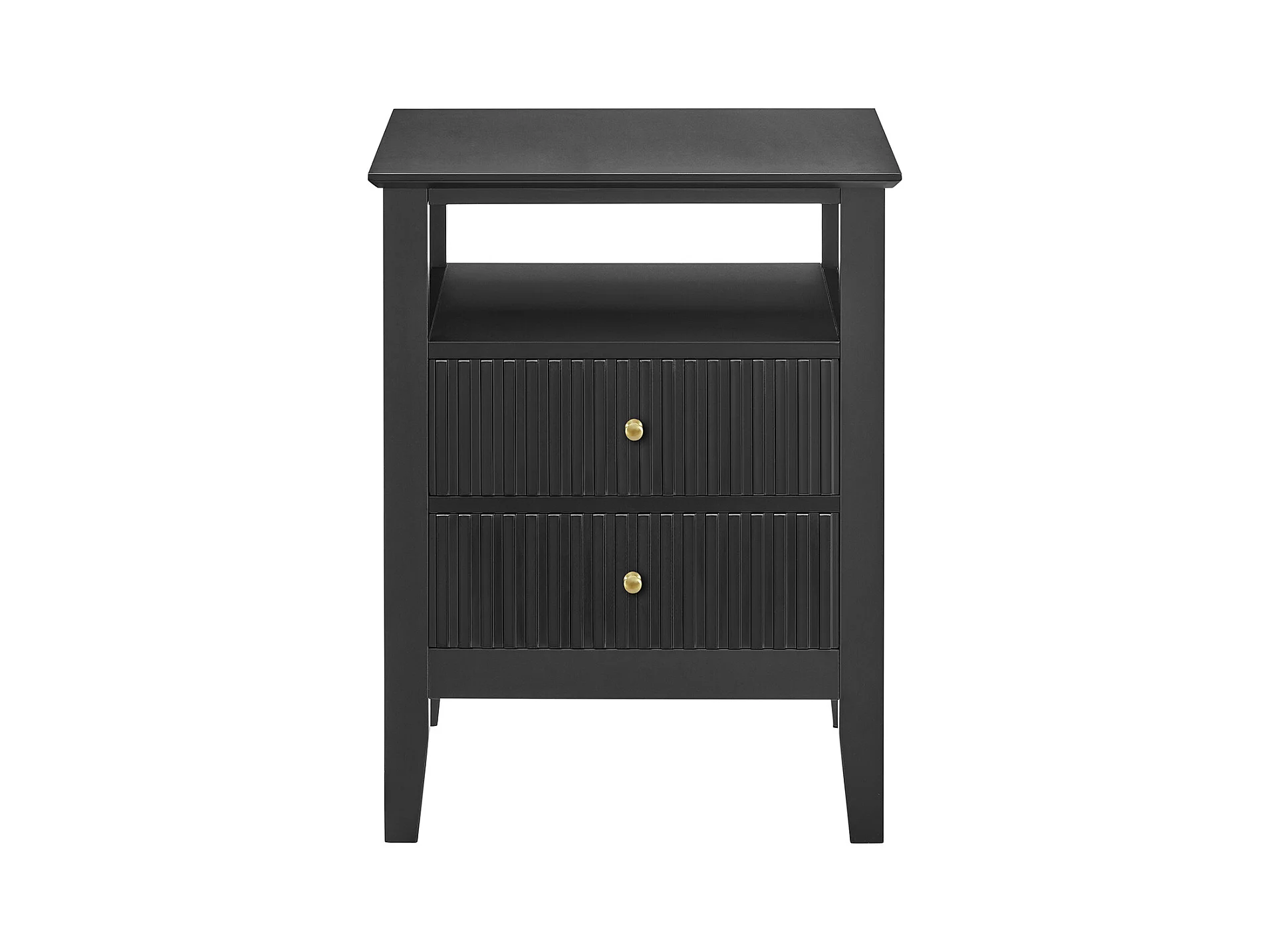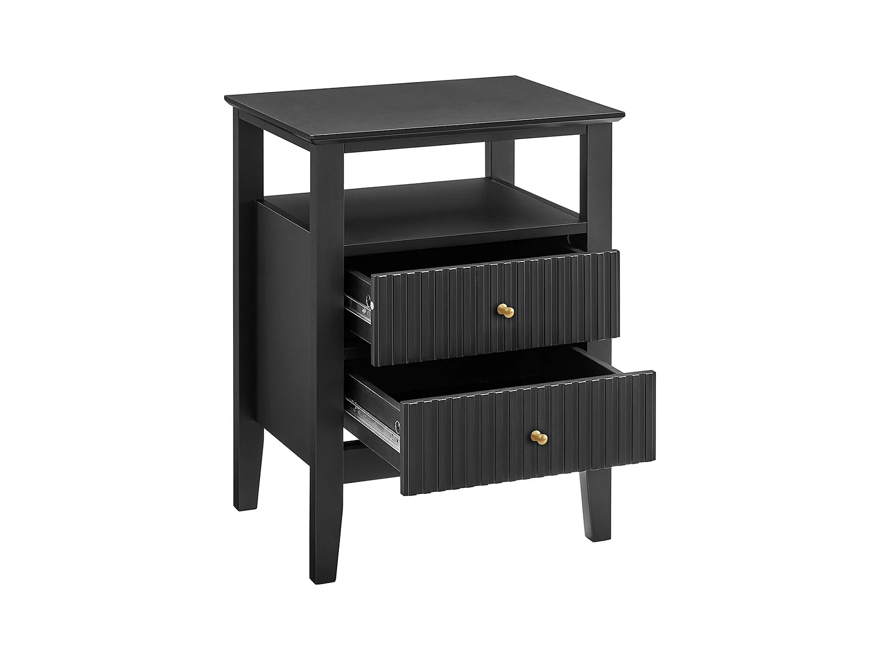 Table de chevet 2 tiroirs et 1 tablette - MDF - Noir - NARIVA