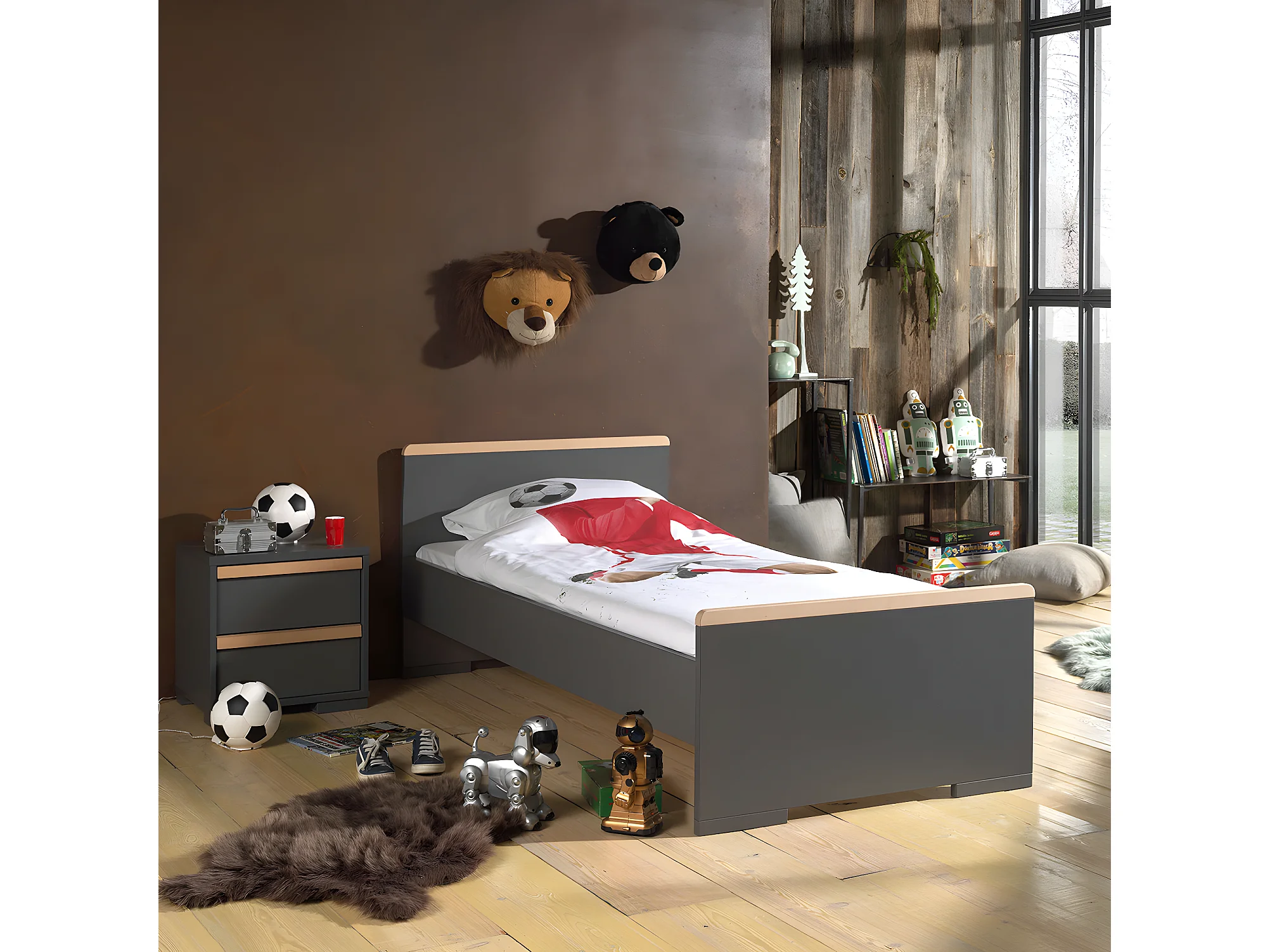 NASH DARK - Chevet 2 Tiroirs Anthracite et Bois