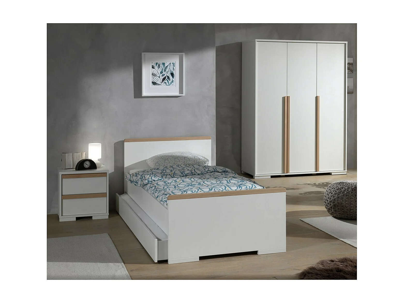 NASH WHITE - Chevet 2 Tiroirs Blanc et Bois
