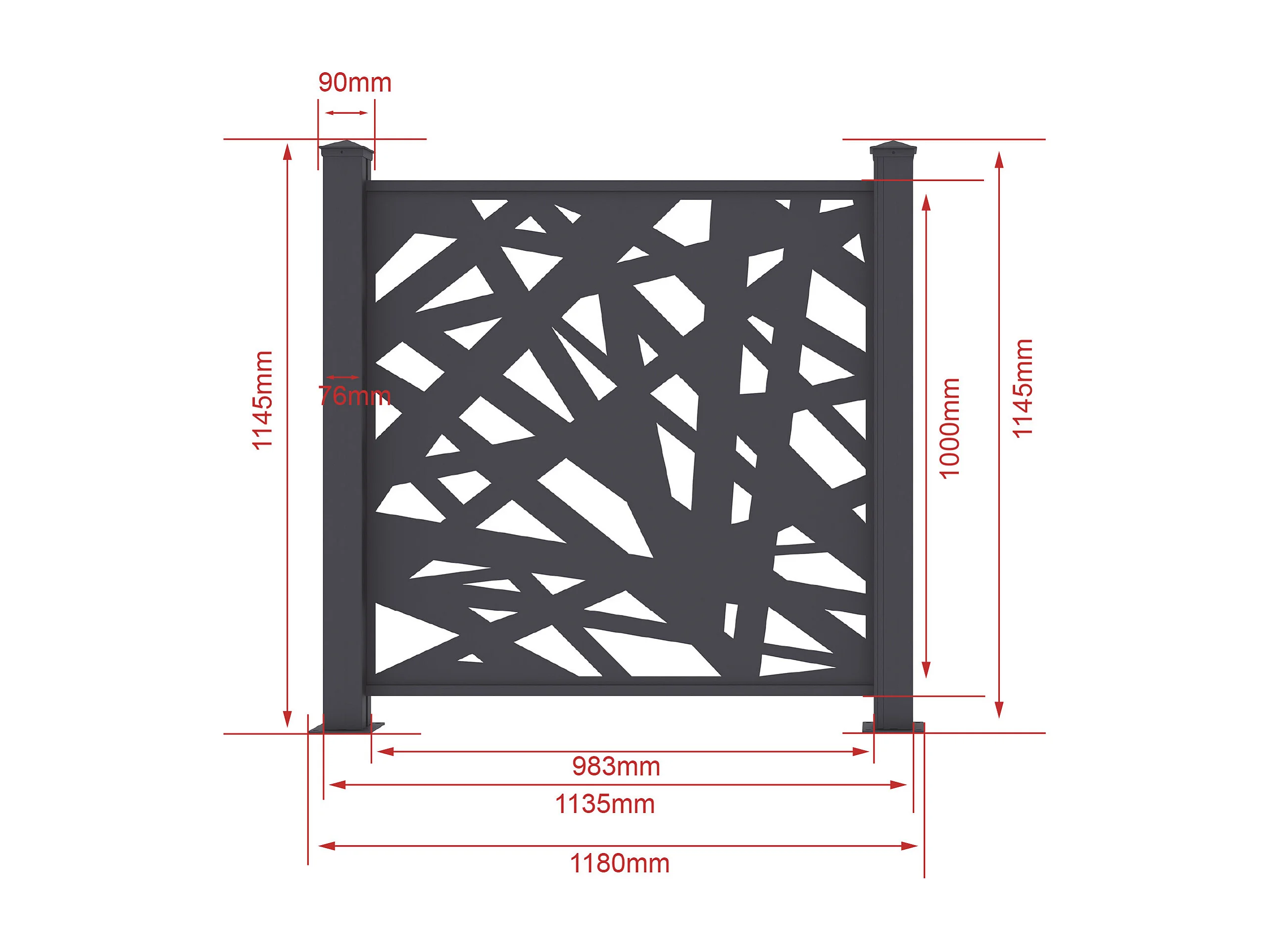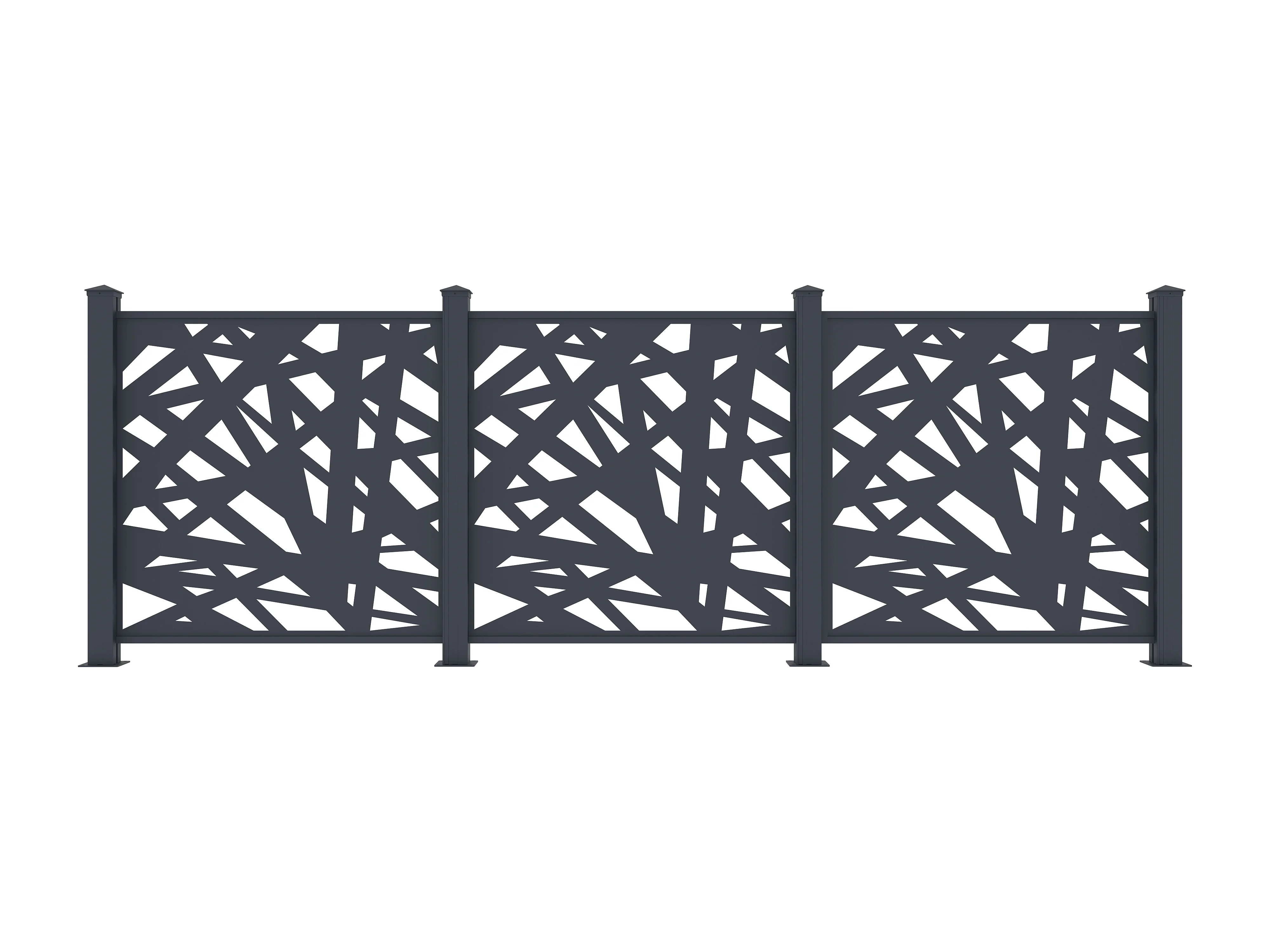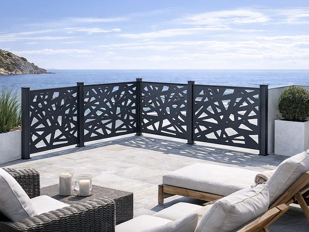 Clôture à poser en aluminium à motif géométrique en découpe laser - Kit de départ - H114 x L118 cm - Anthracite - NATAFO