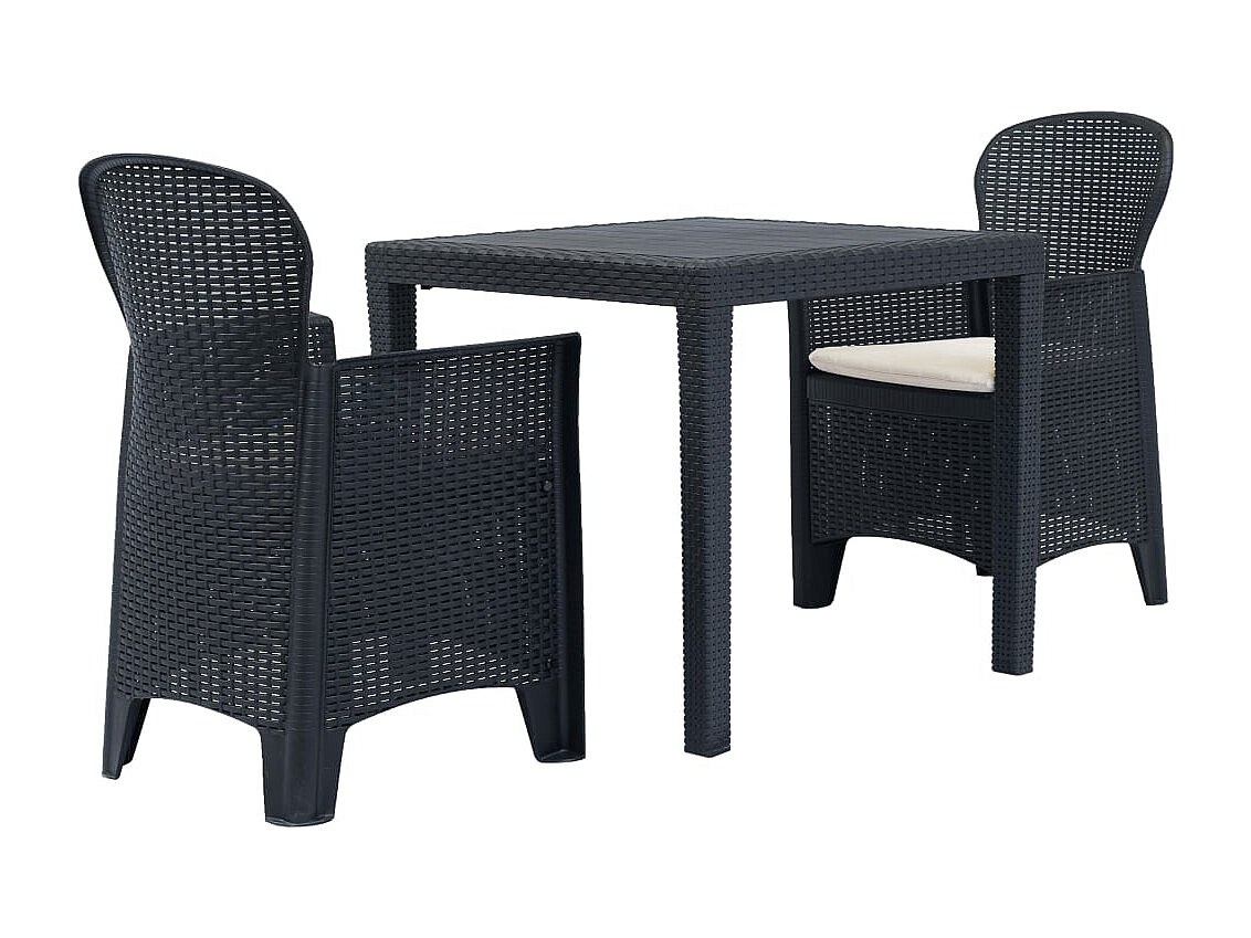 Nathan Paul Ensemble de bistro 3 pcs Plastique Anthracite Aspect de rotin