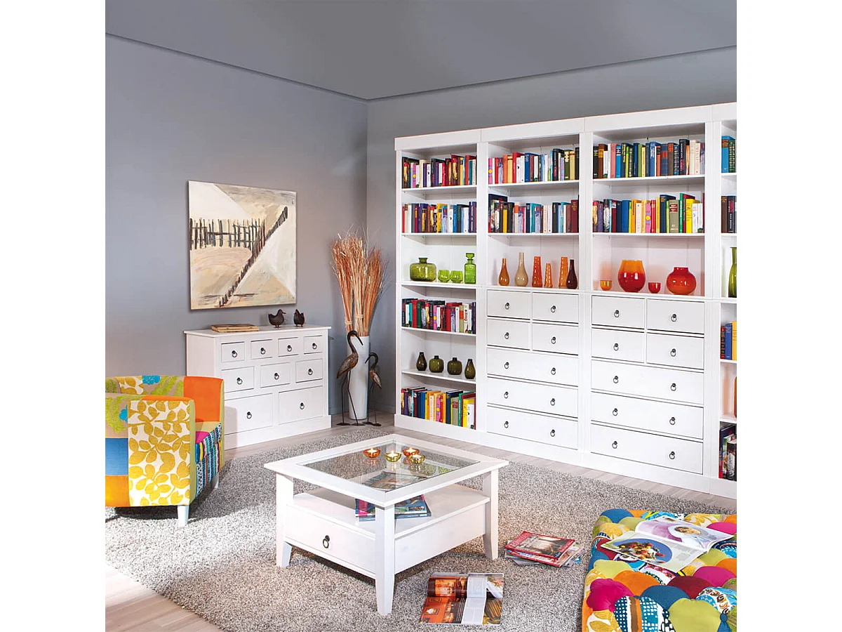 NATUR - Table Basse Carrée Bois Massif Vernis Blanc et Verre