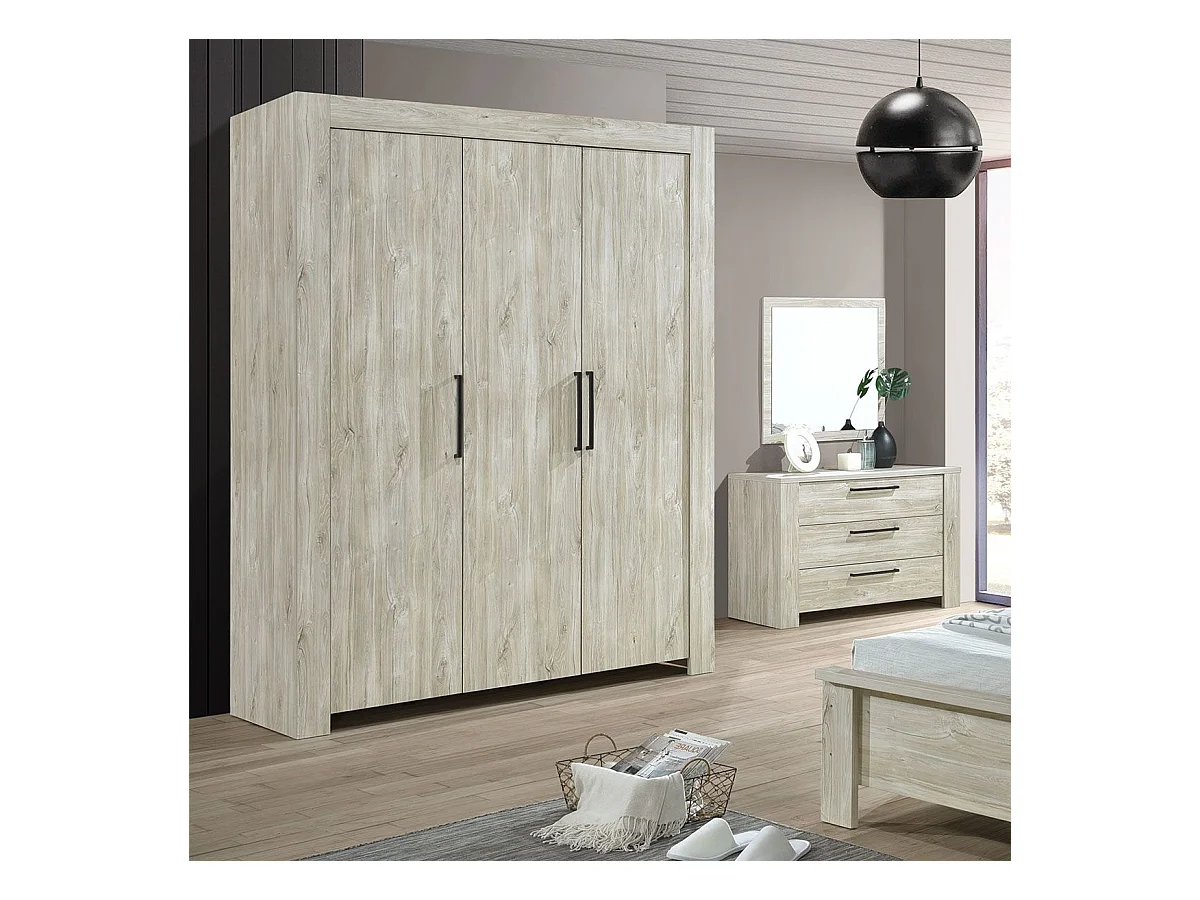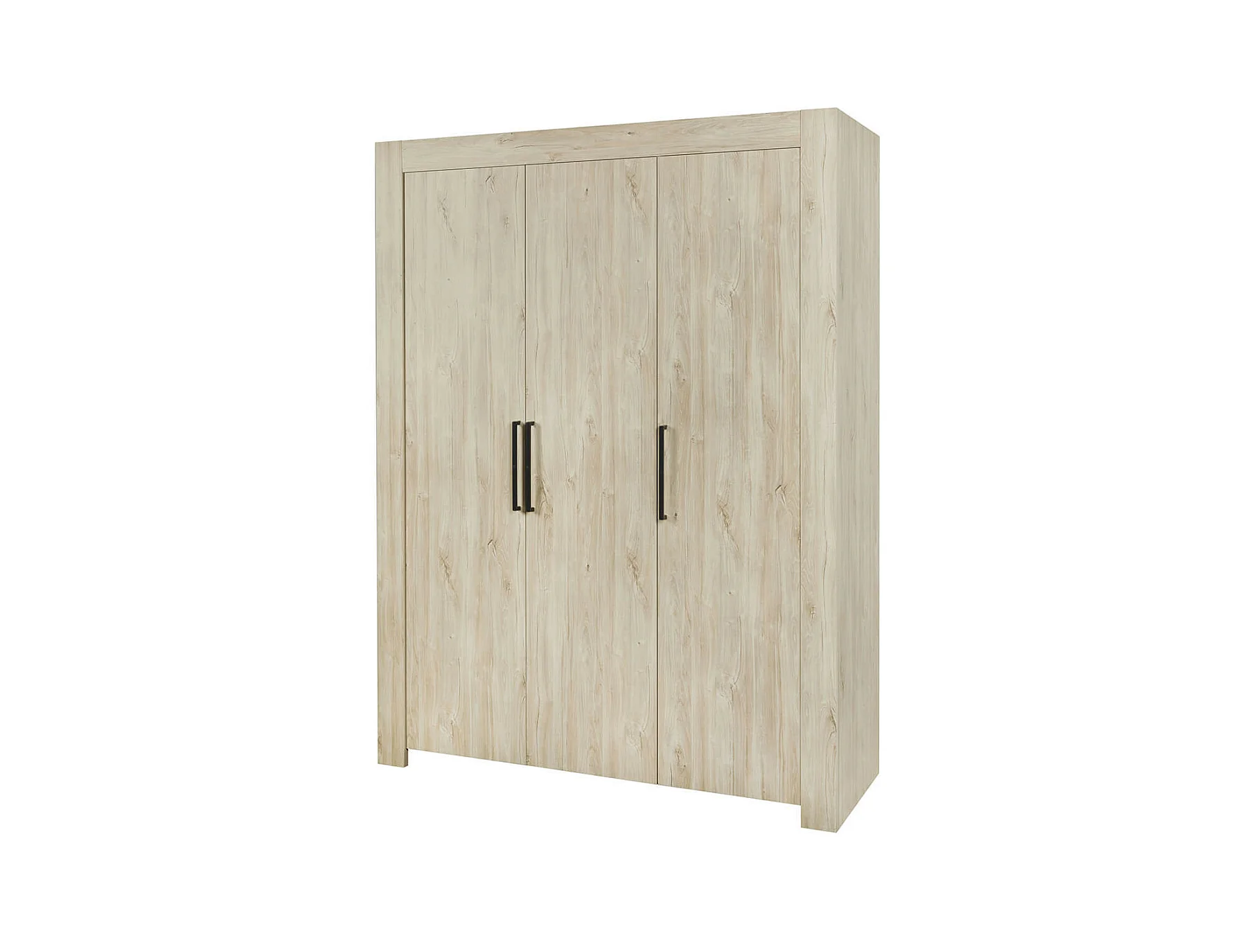 NATURAL - Armoire 3 Portes 165cm Aspect Bois Clair
