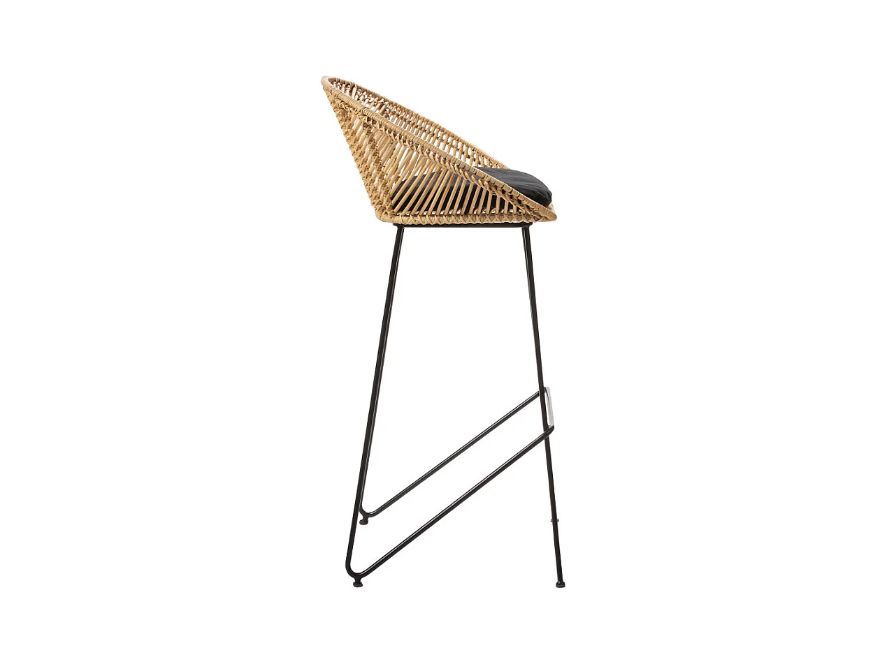 Tabouret de bar rotin naturel et acier noir Taka 73cm