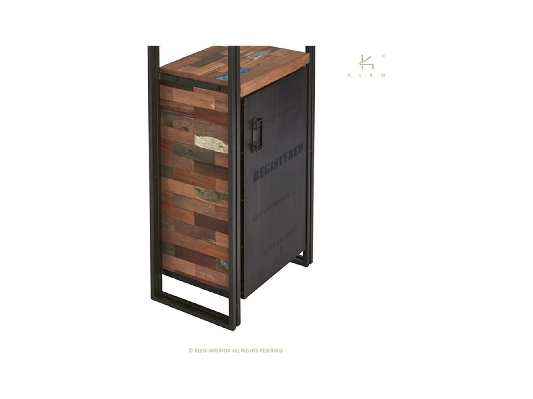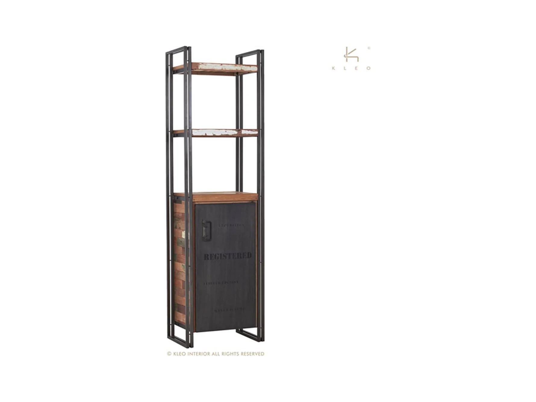 Nautical bibliothèque en bois de bateau recyclé - 1 porte - 2 niches - Style Industriel - H210