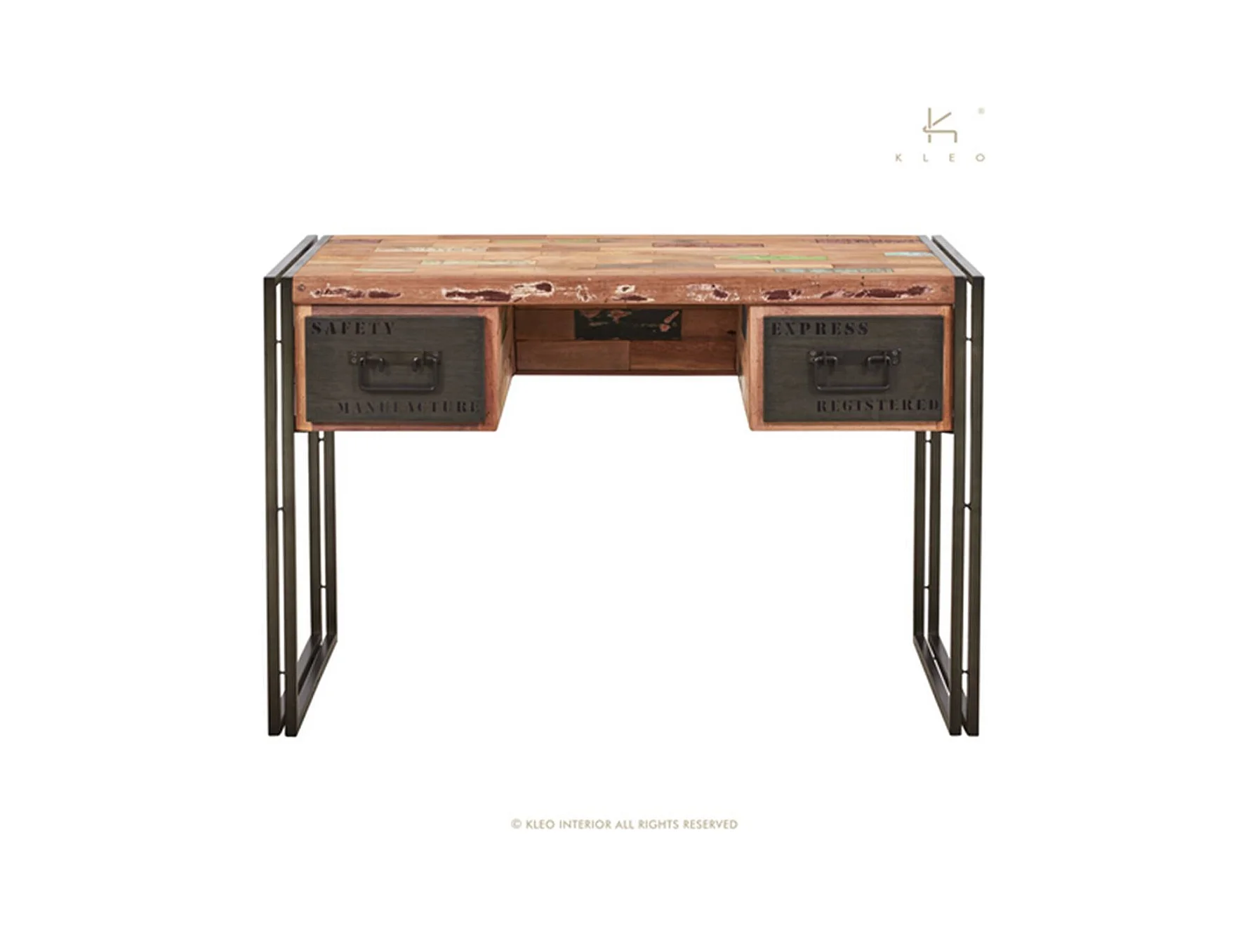 Nautical bureau en bois de bateau recyclé - 2 tiroirs - Style Industriel - L120 - H80