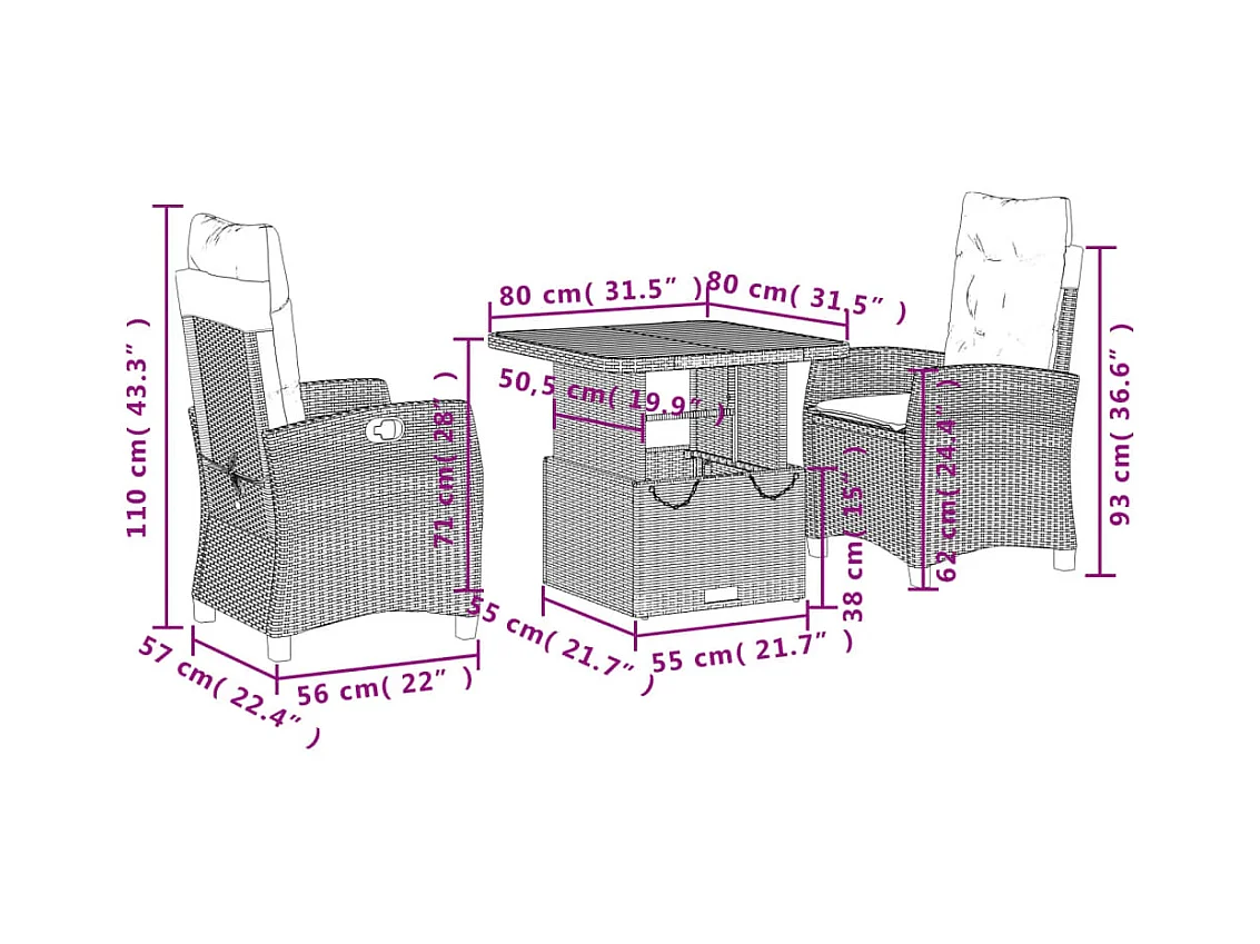 Necati Ensemble à manger de jardin et coussins 3 pcs Beige poly rotin
