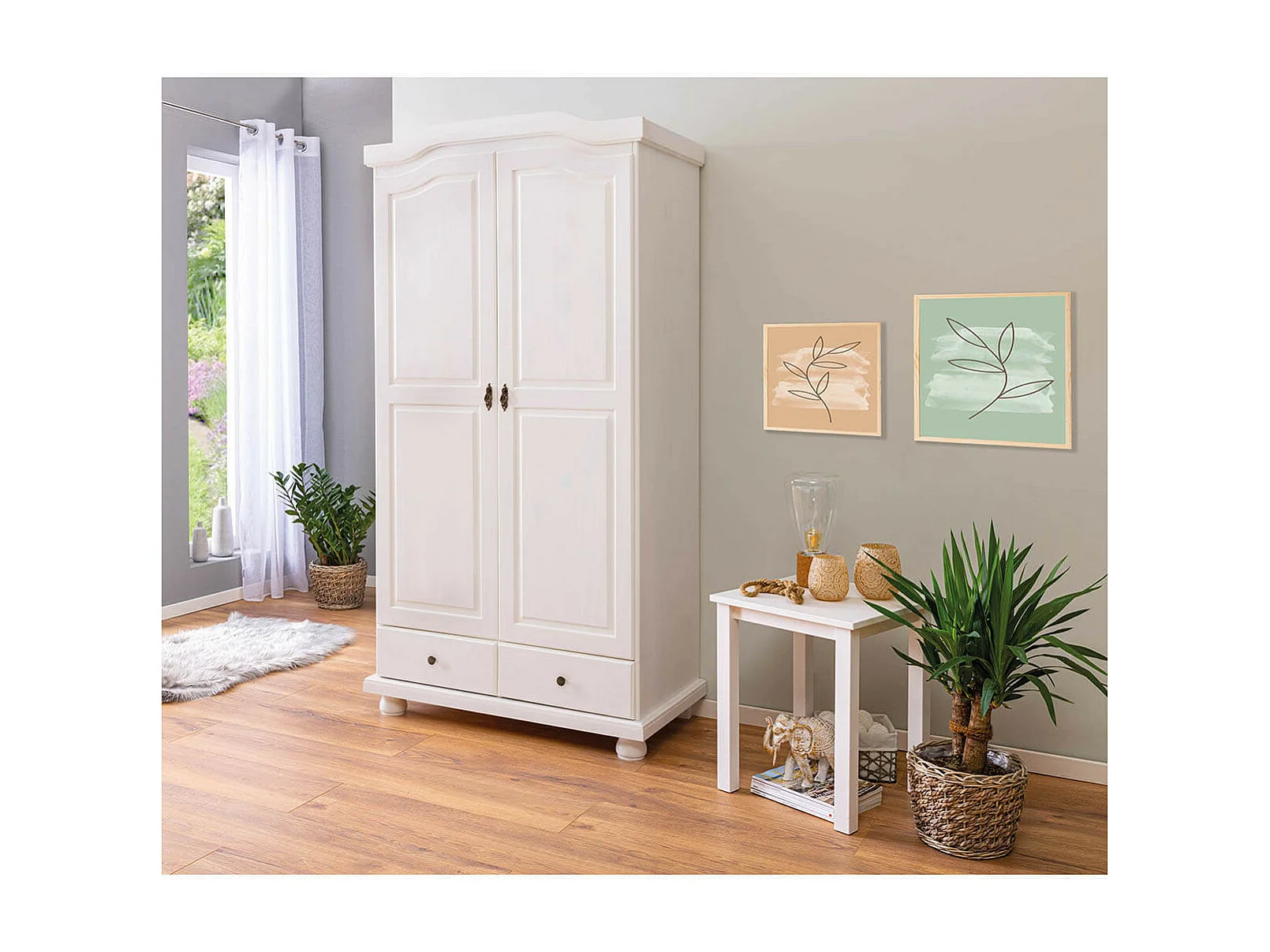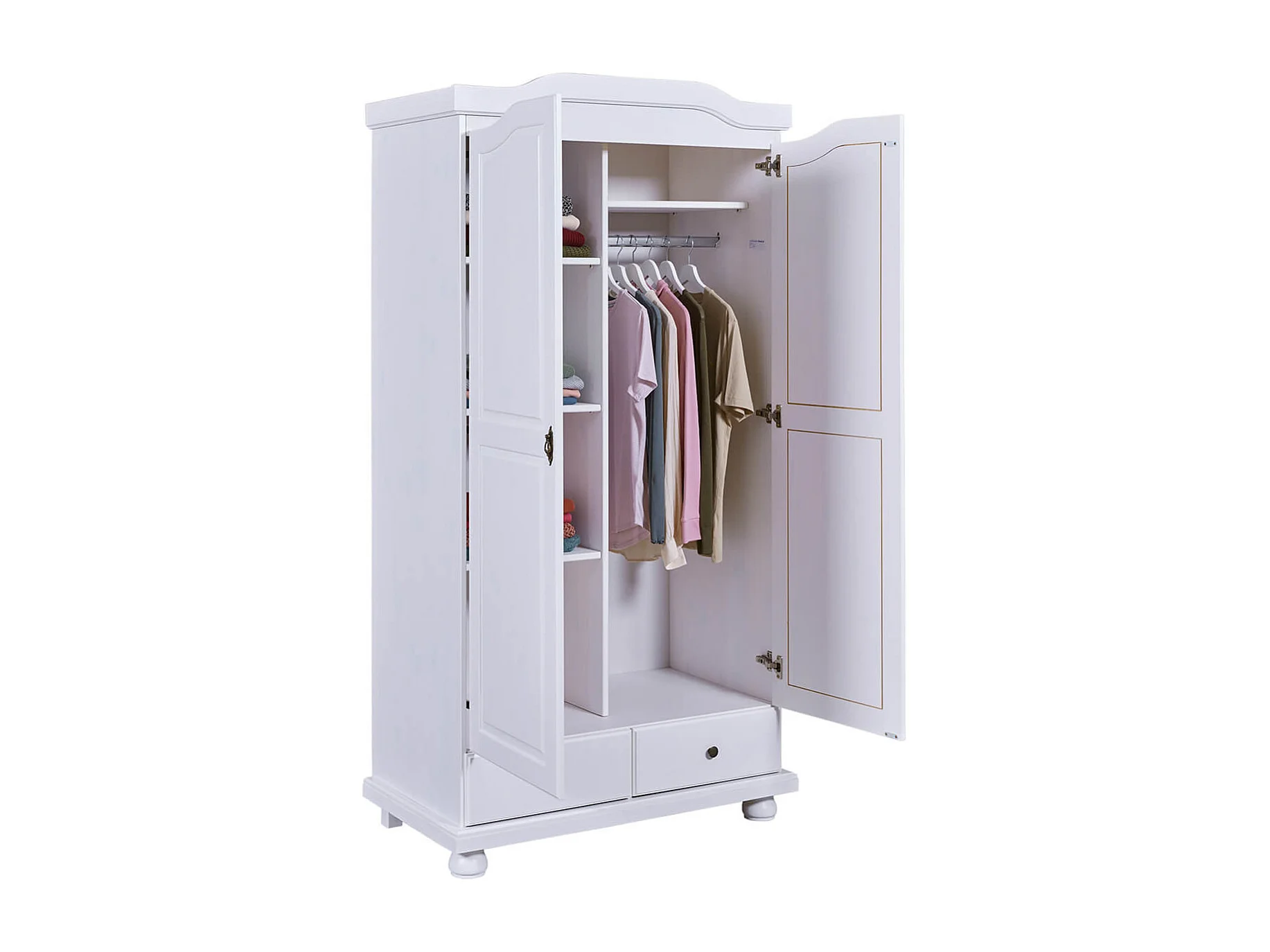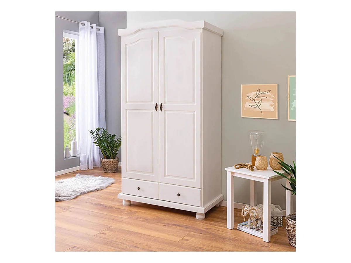 NEDER - Armoire 2 Portes Bois Massif Blanc