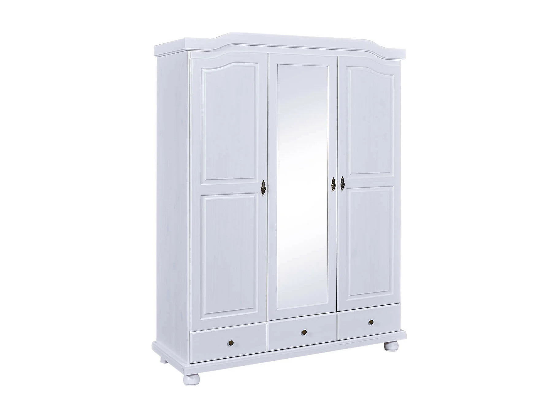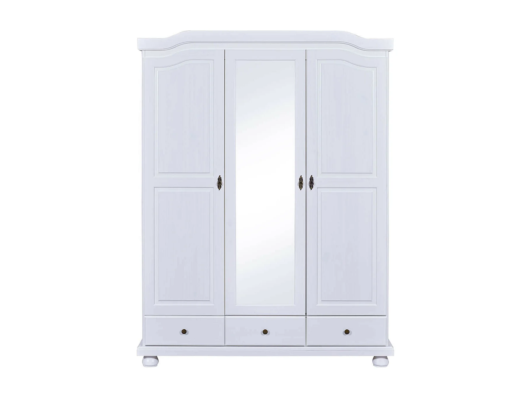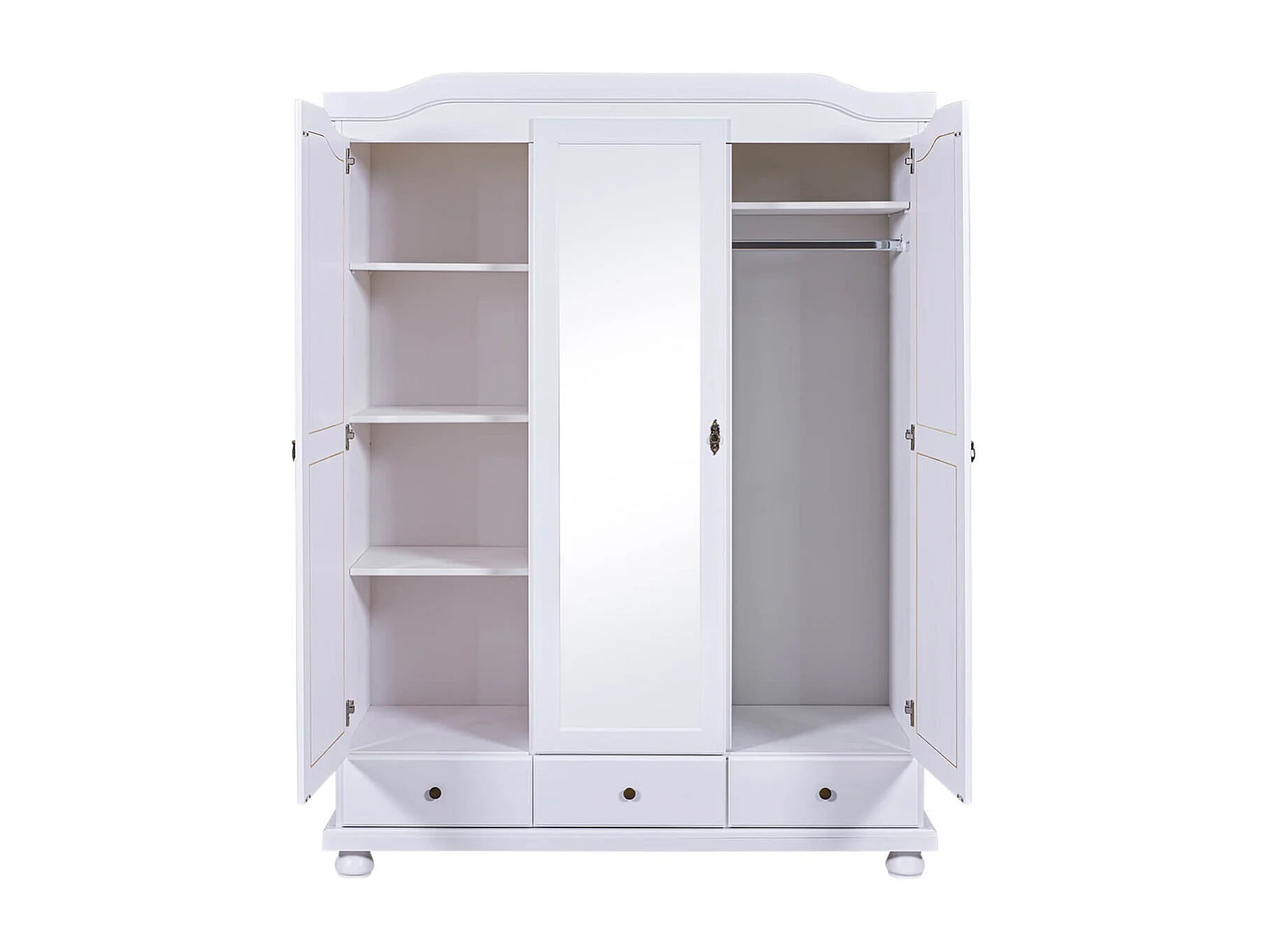 NEDER - Armoire 3 Portes Avec Penderie Bois Massif Vernis Blanc