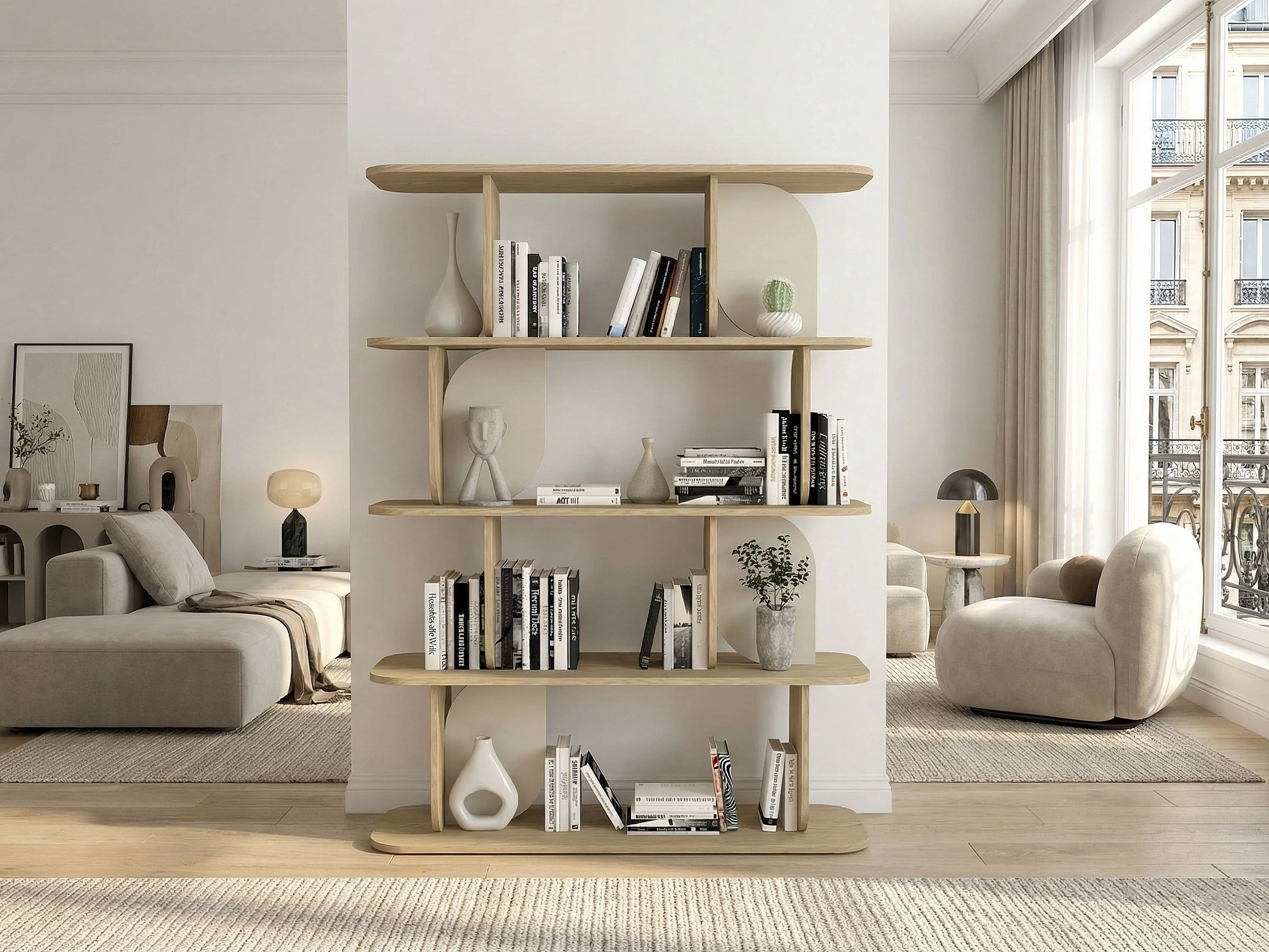 Etagère avec 4 tablettes - Naturel clair et beige - NELERIA