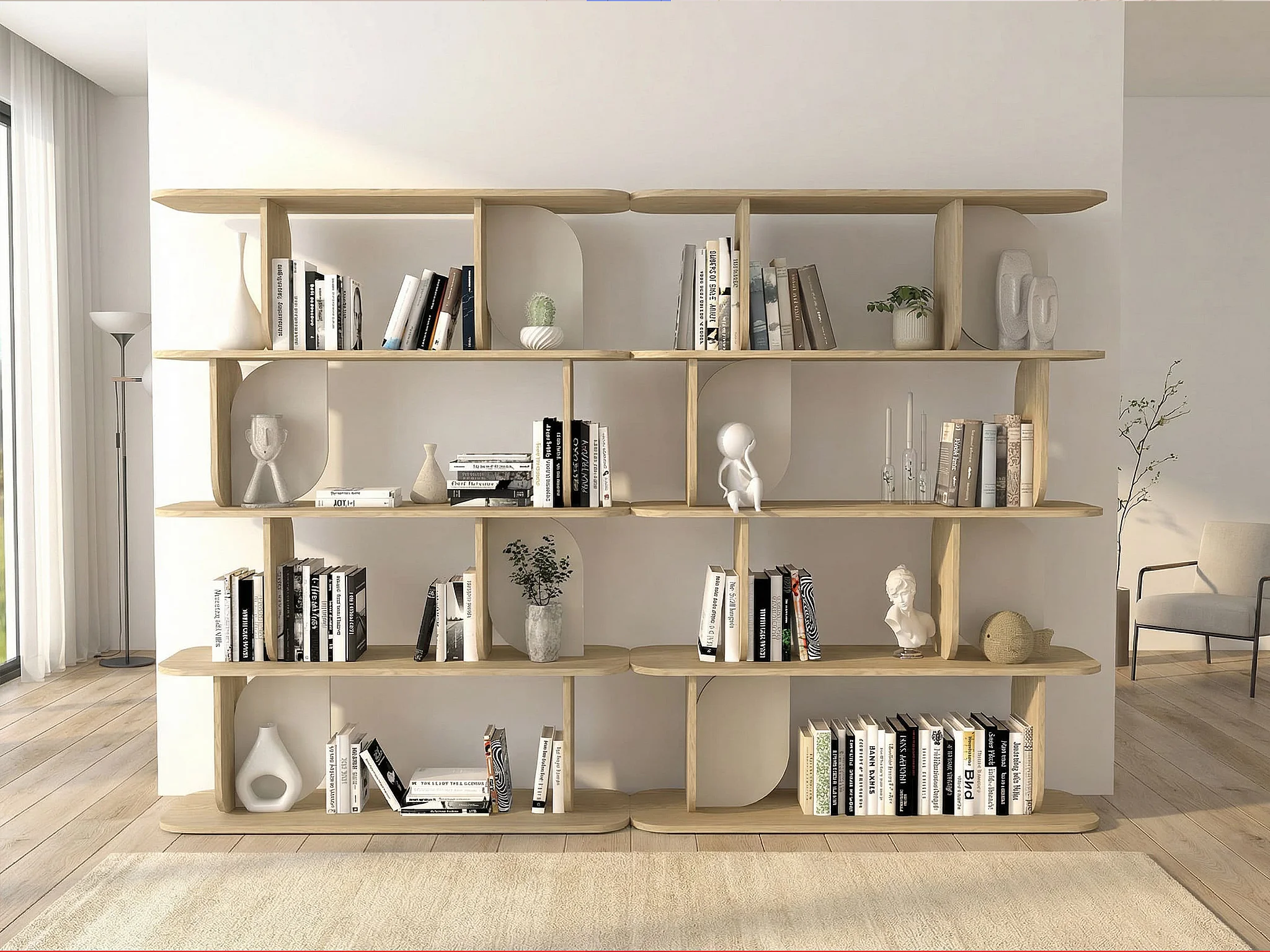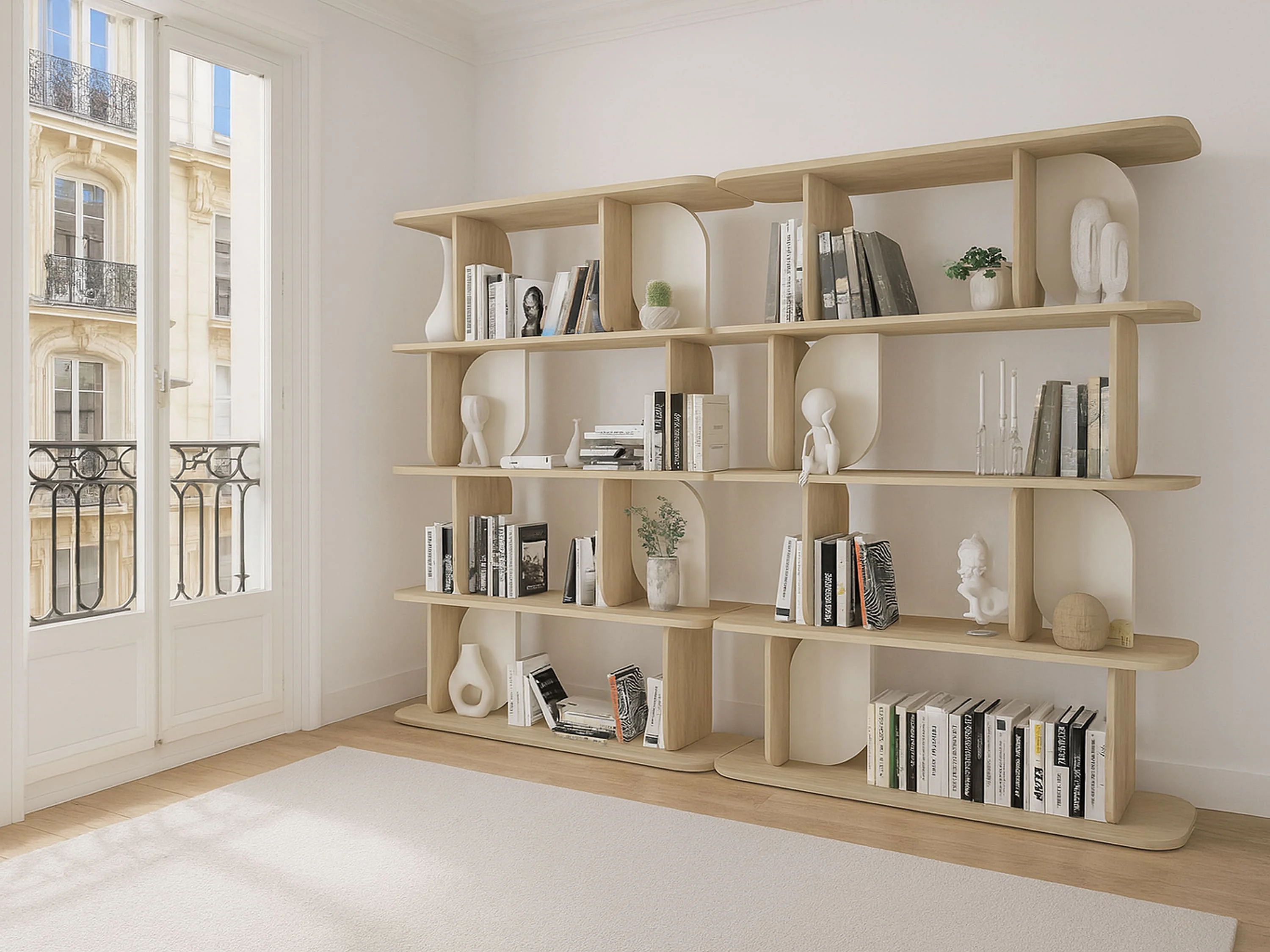 Lot de 2 étagères avec 4 tablettes - Naturel clair et beige - NELERIA