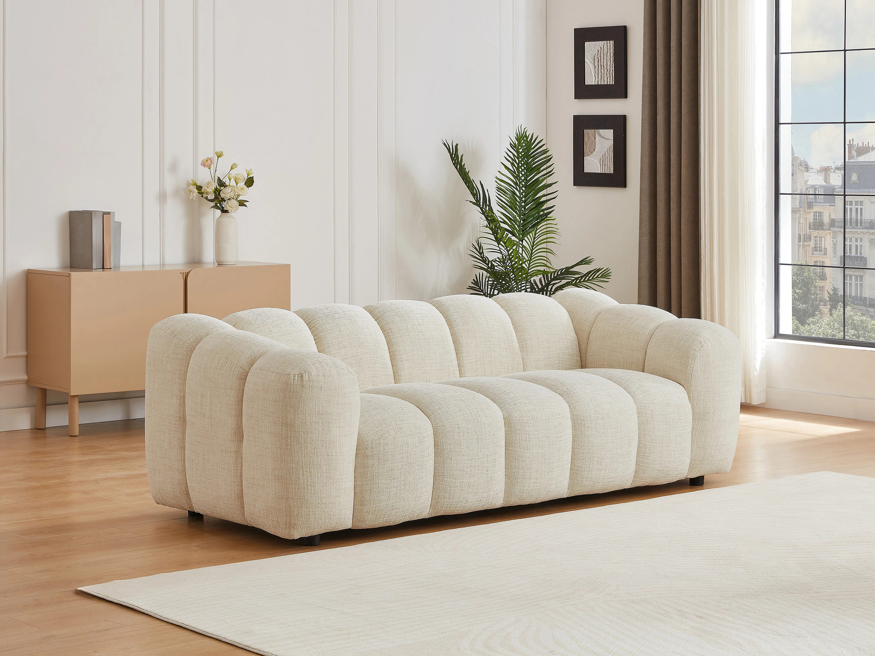 Canapé 3 places en tissu chenille beige NELIMAR