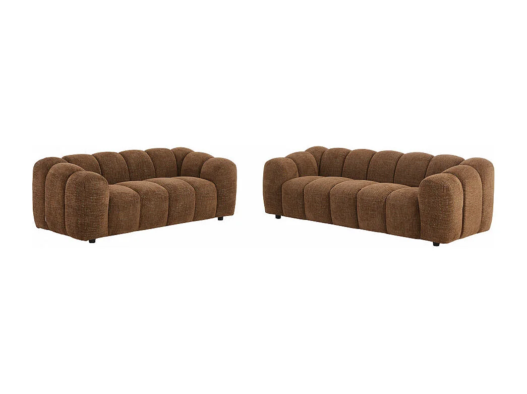Canapé 3 places et 2 places en tissu chenille marron NELIMAR