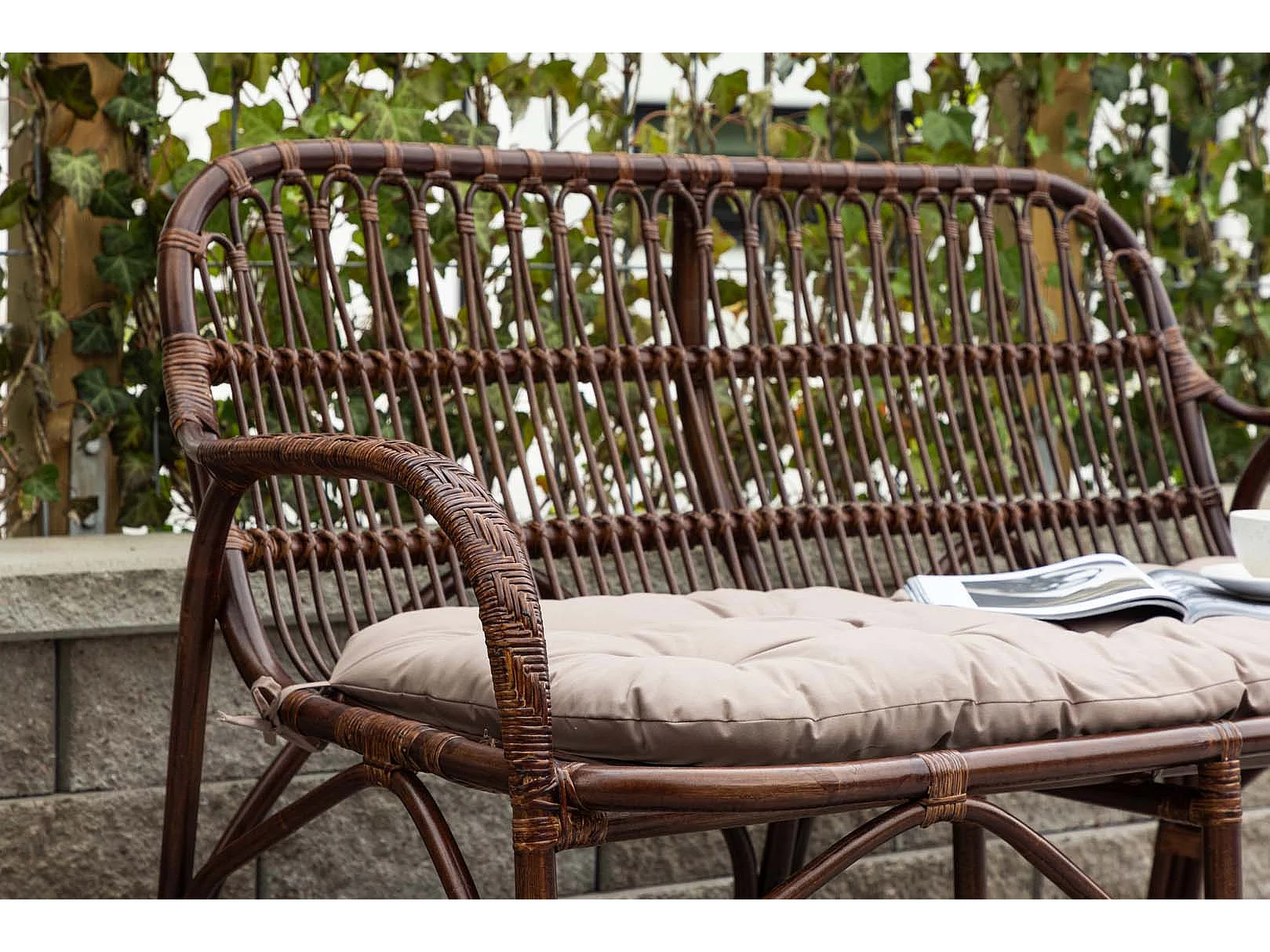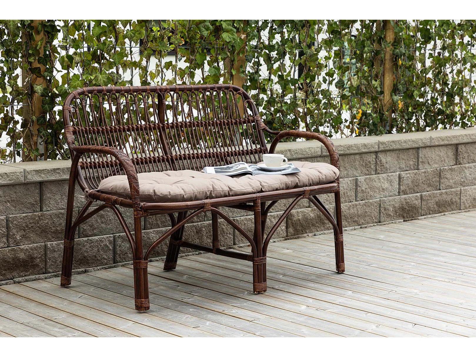 Canapé de Jardin 2 Places en Rotin "Nella" 129cm Noyer