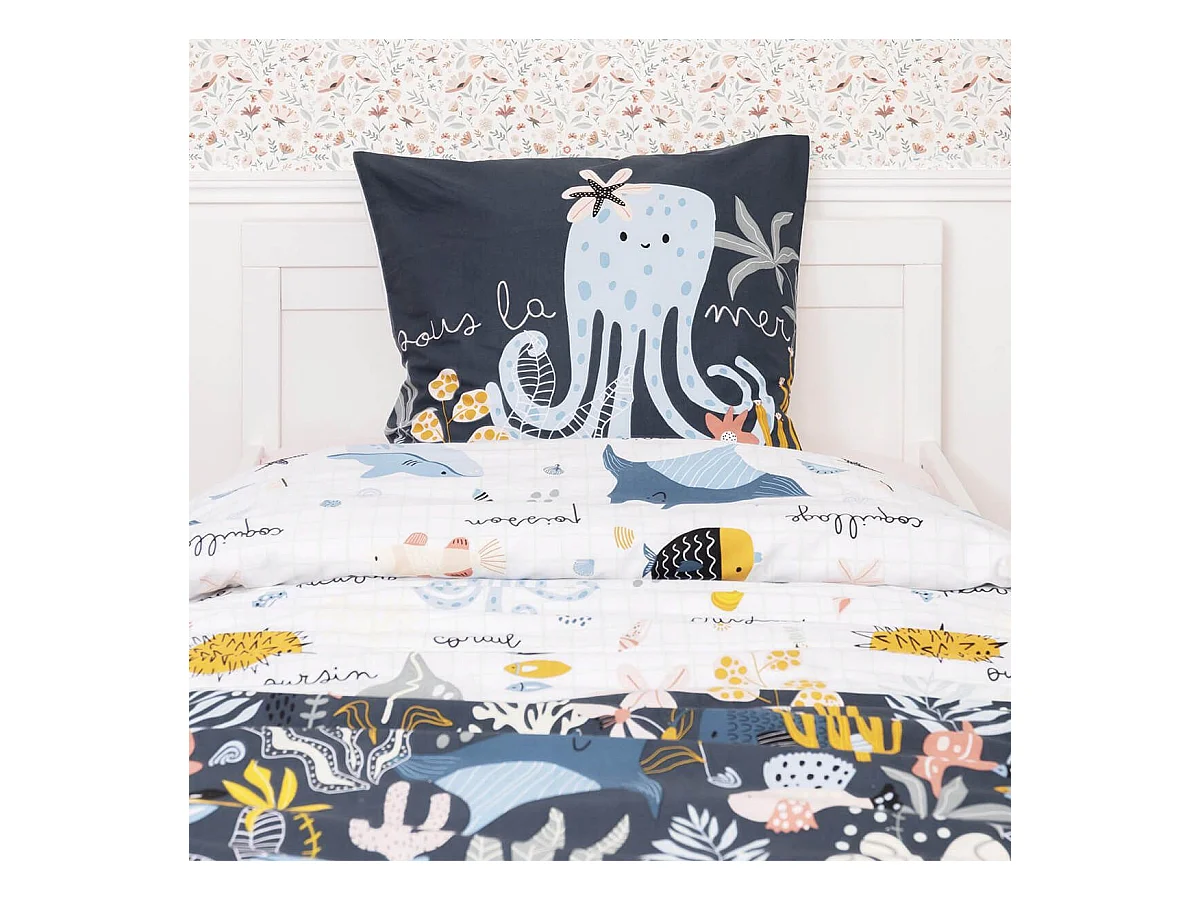 NEMO - Parure de Lit Imprimé Océan Housse de Couette 140x200cm + 1 Taie d'Oreiller