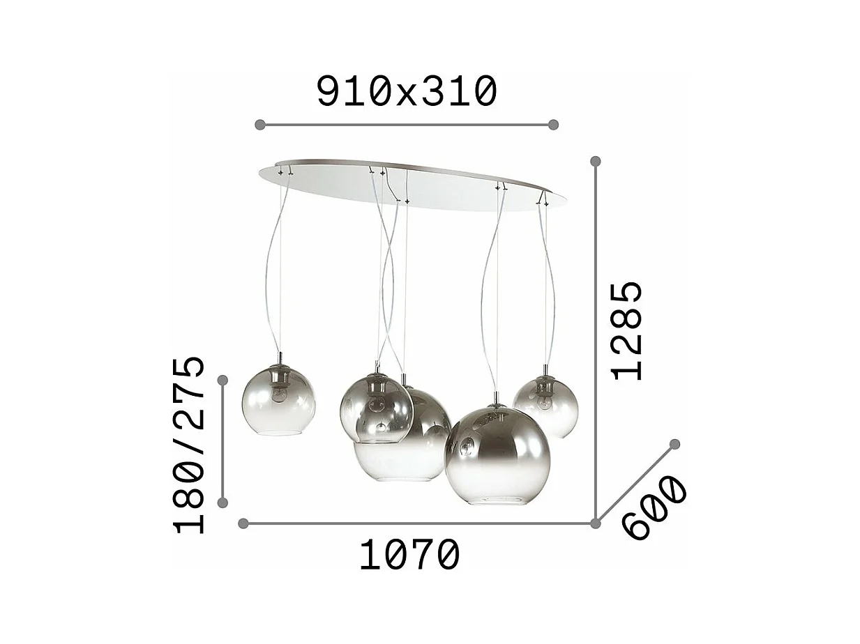 Ideal Lux Discovery Fade Suspension à 5 ampoules au plafond, chrome, E27