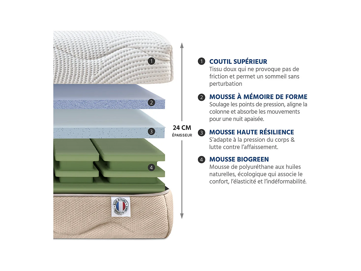 NUIT DE COTON | Matelas 4 SAISONS 160x200 cm | Mousse avec mémoire de forme