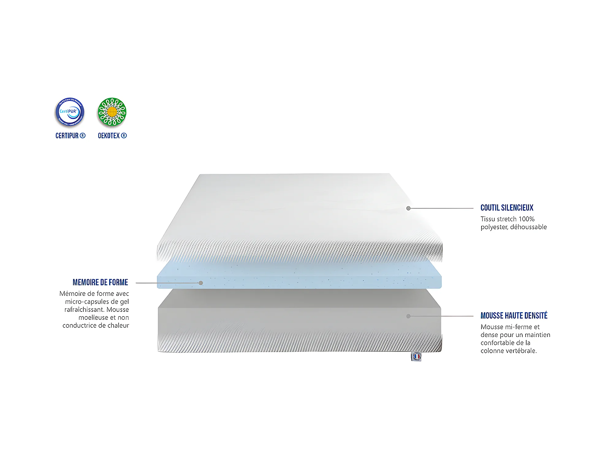NEOREV | Matelas AZEO 140x190 cm | Mousse avec mémoire de forme