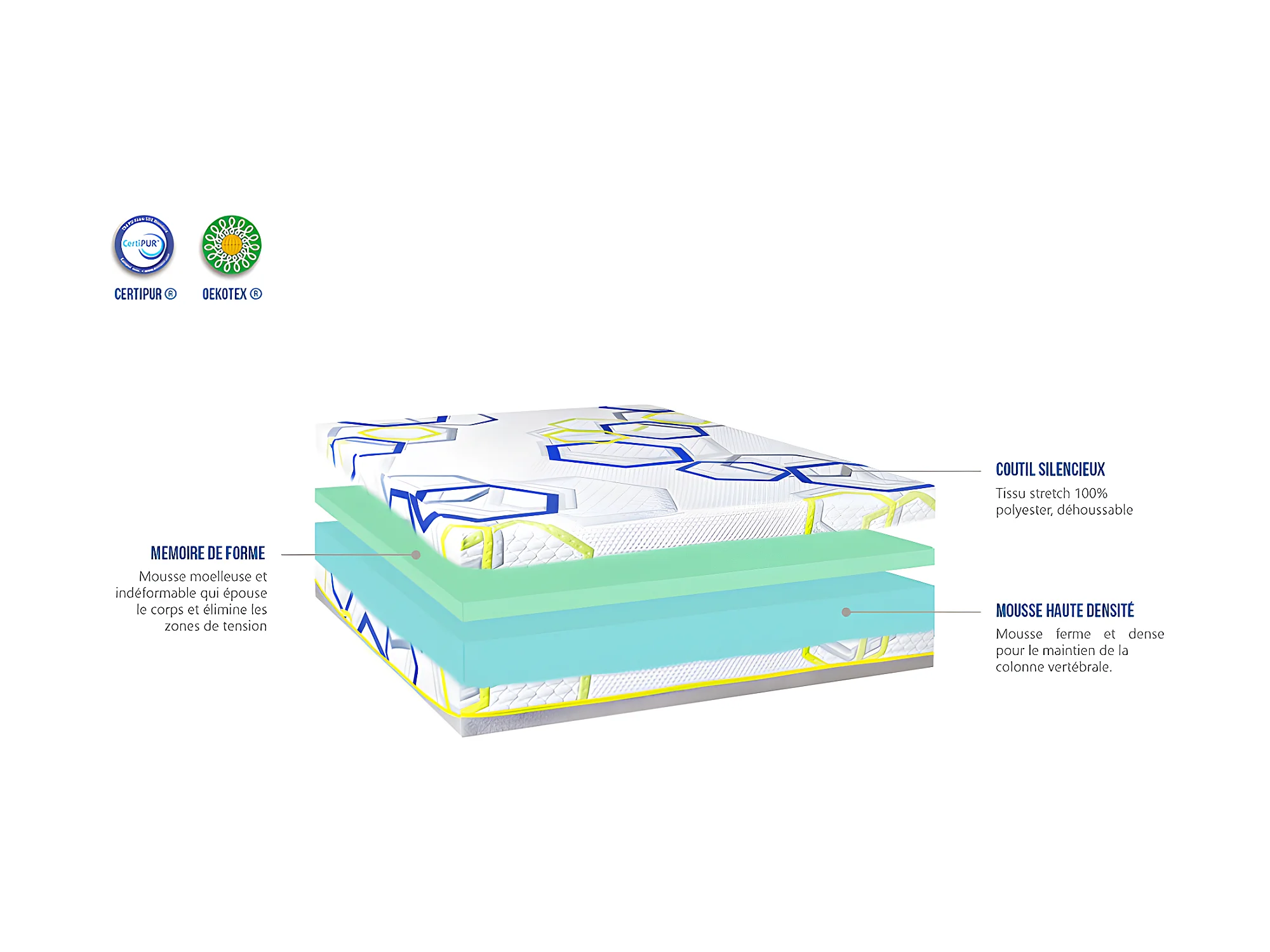 OLYMPE LITERIE | Matelas CASSIOPEE 180x200 cm | Mousse avec mémoire de forme