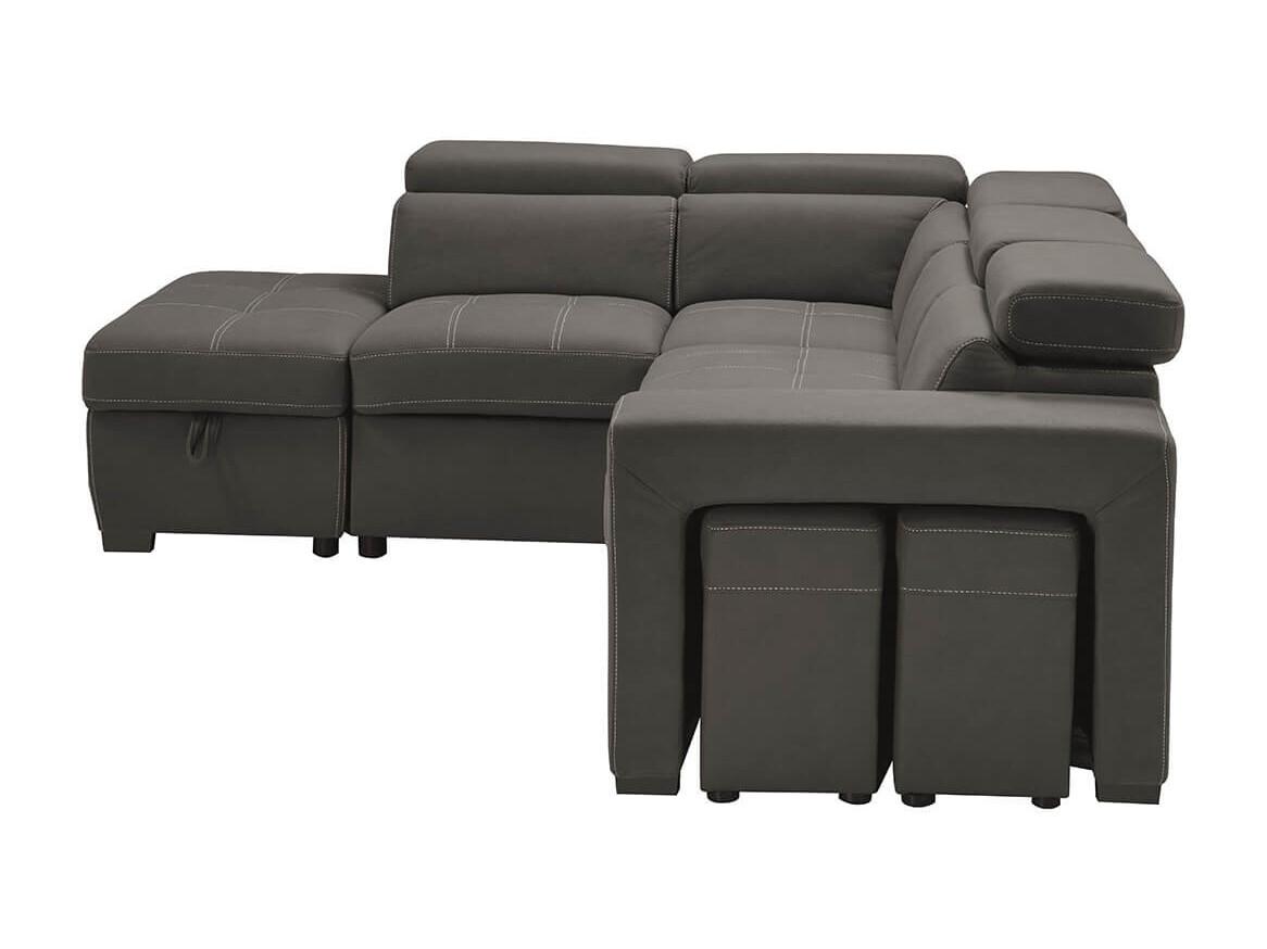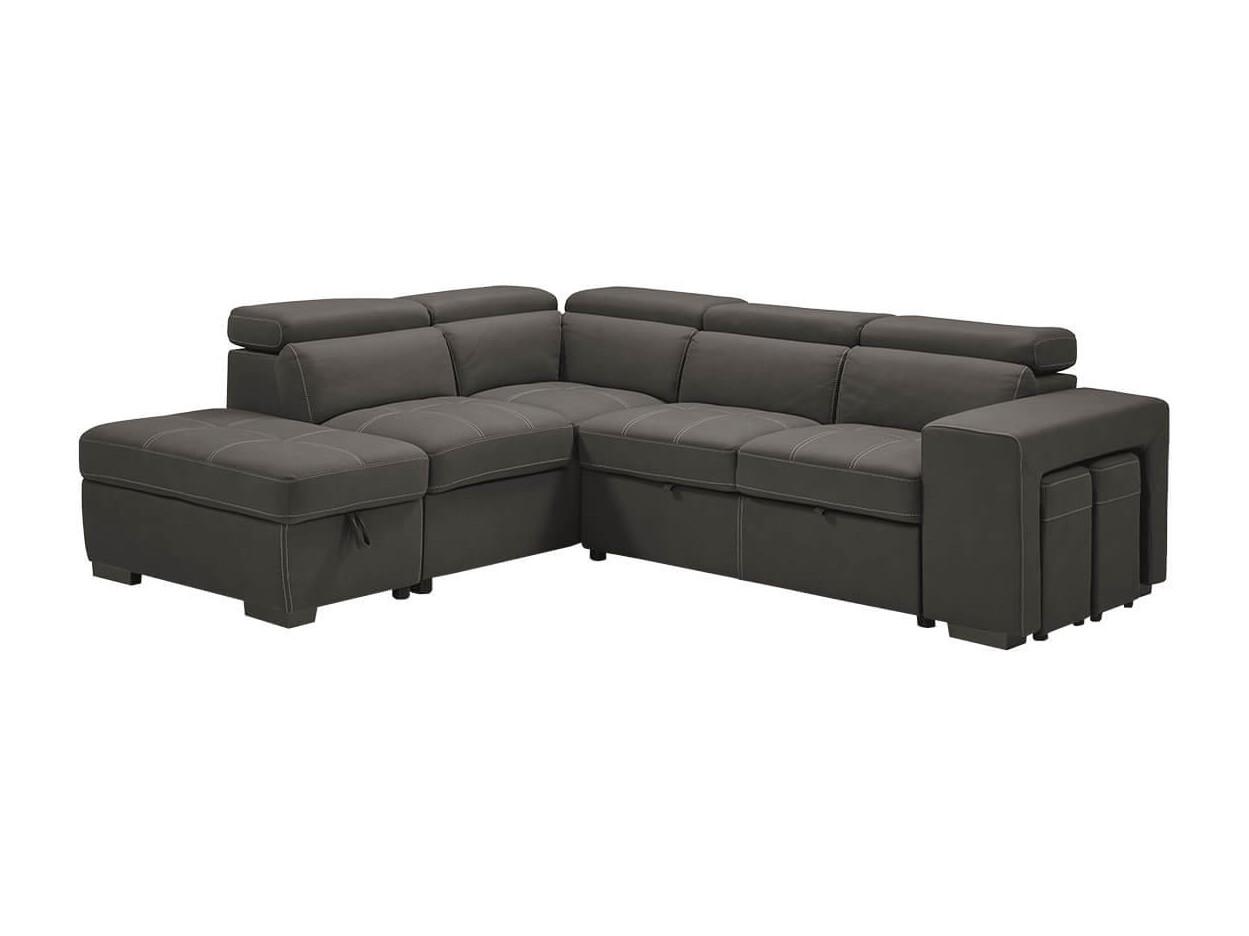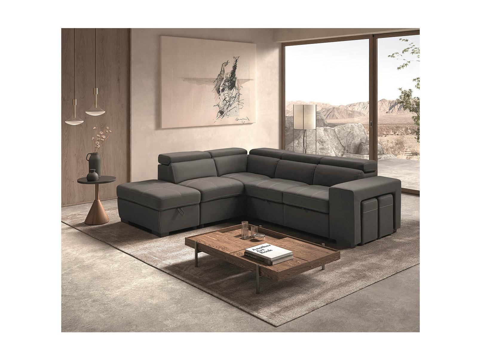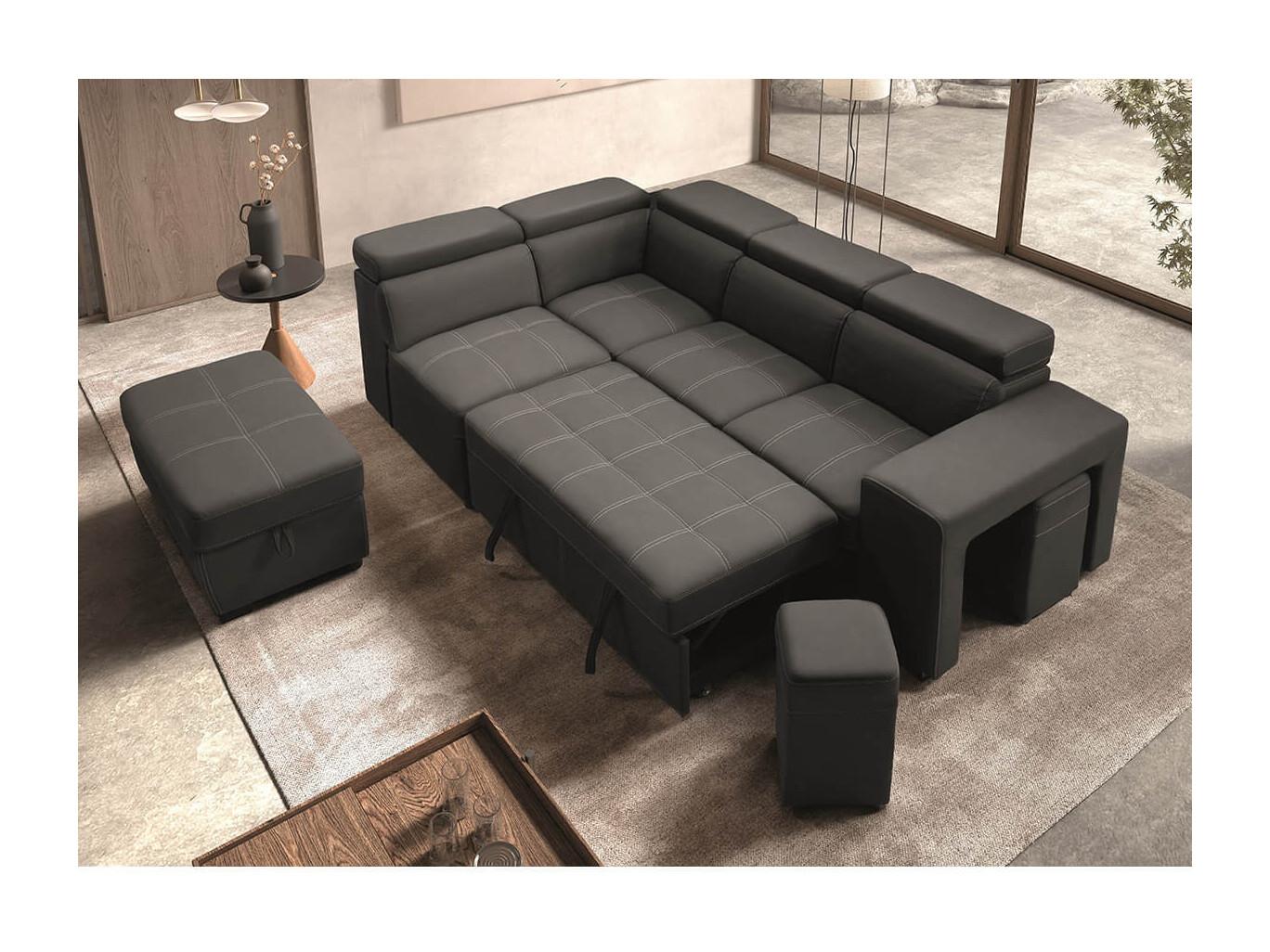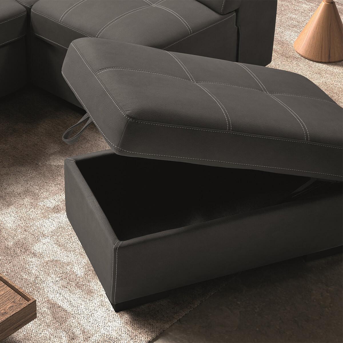 NERA - Canapé d'Angle Gauche Convertible avec 2 Poufs et 1 Coffre Gris