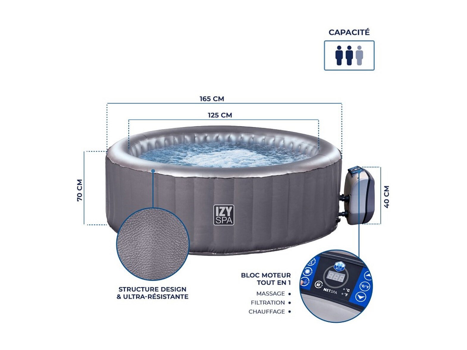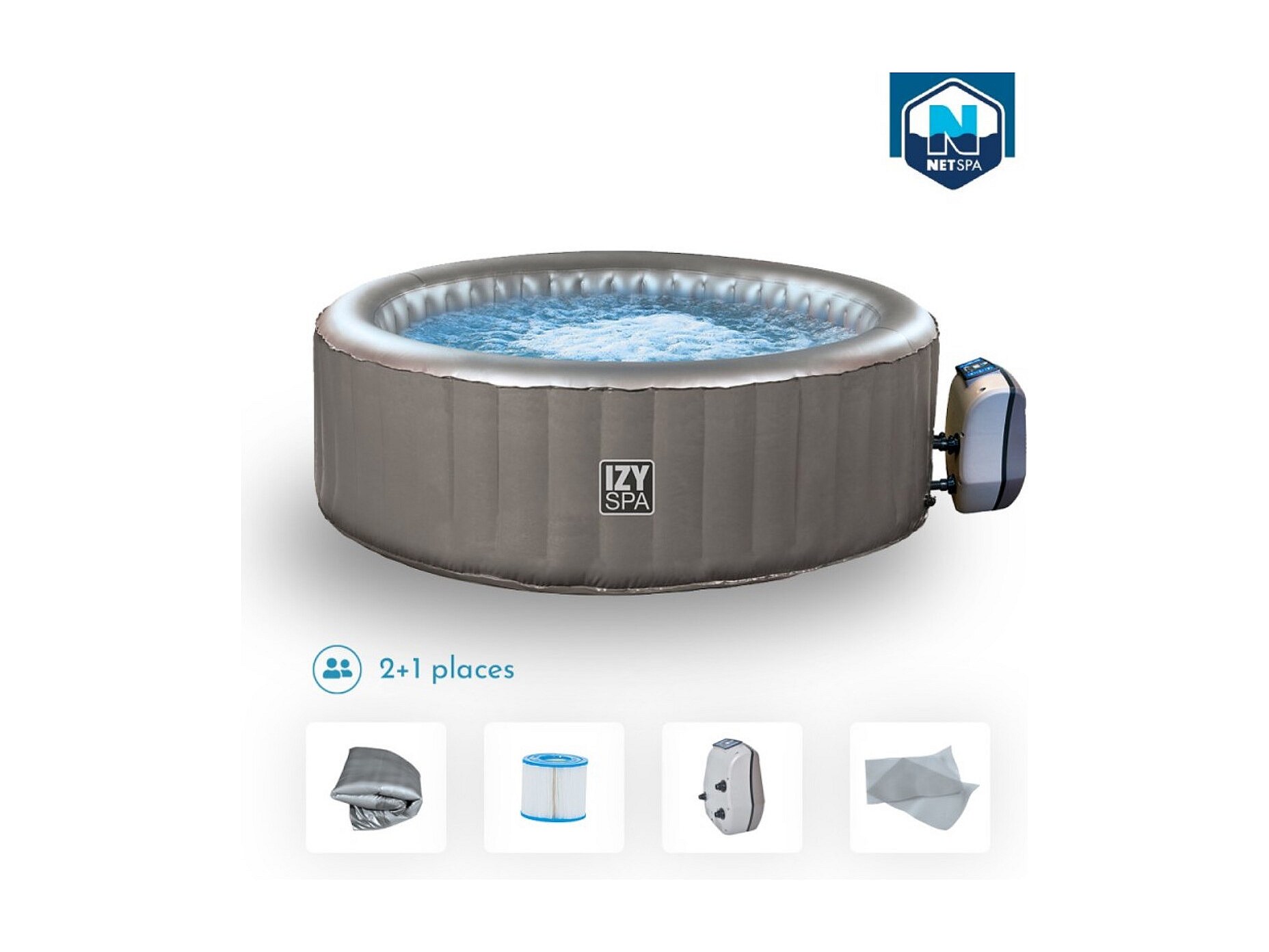 NETSPA SP-IZY125 - Spa Gonflable Izy - 2 + 1 Places - Ø 175 x H 70 cm - La référence des Spas gonflables Gris