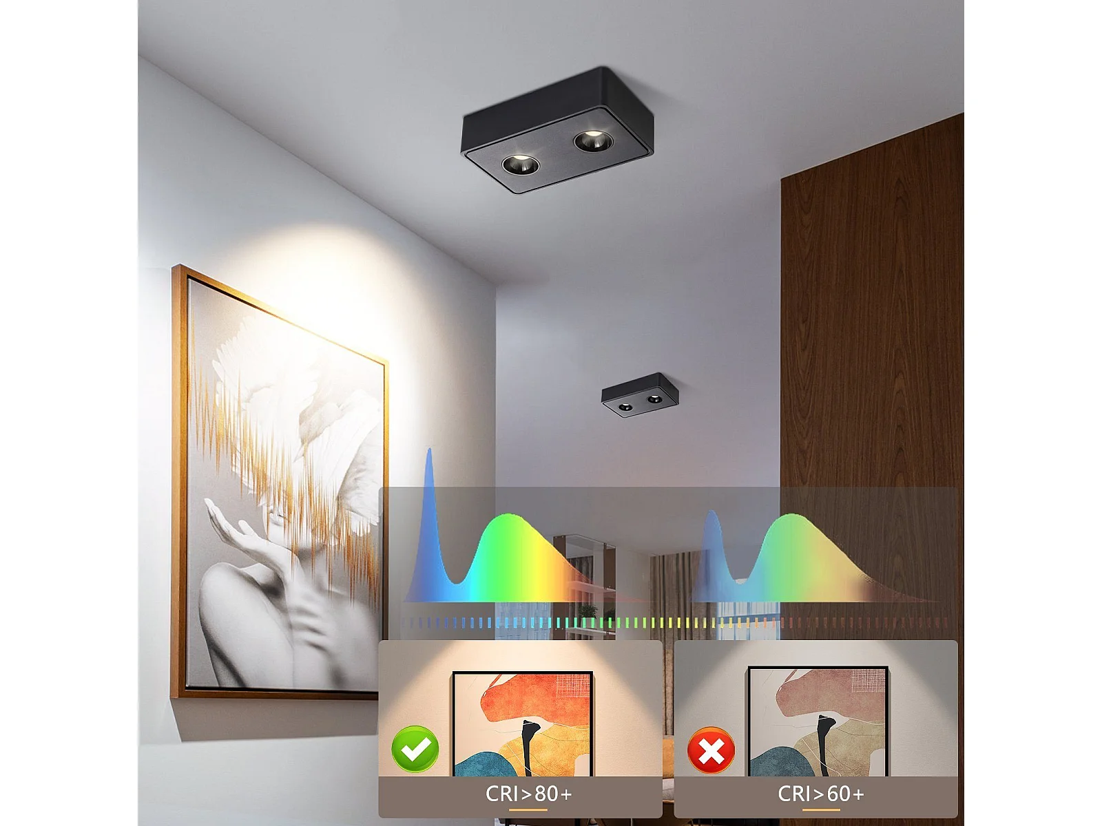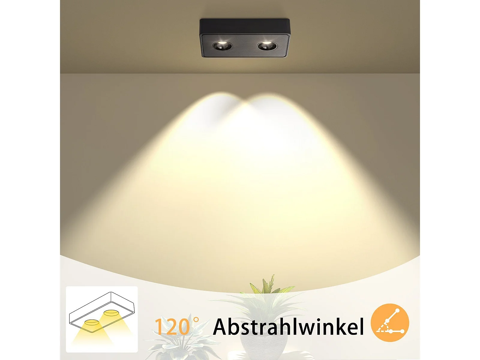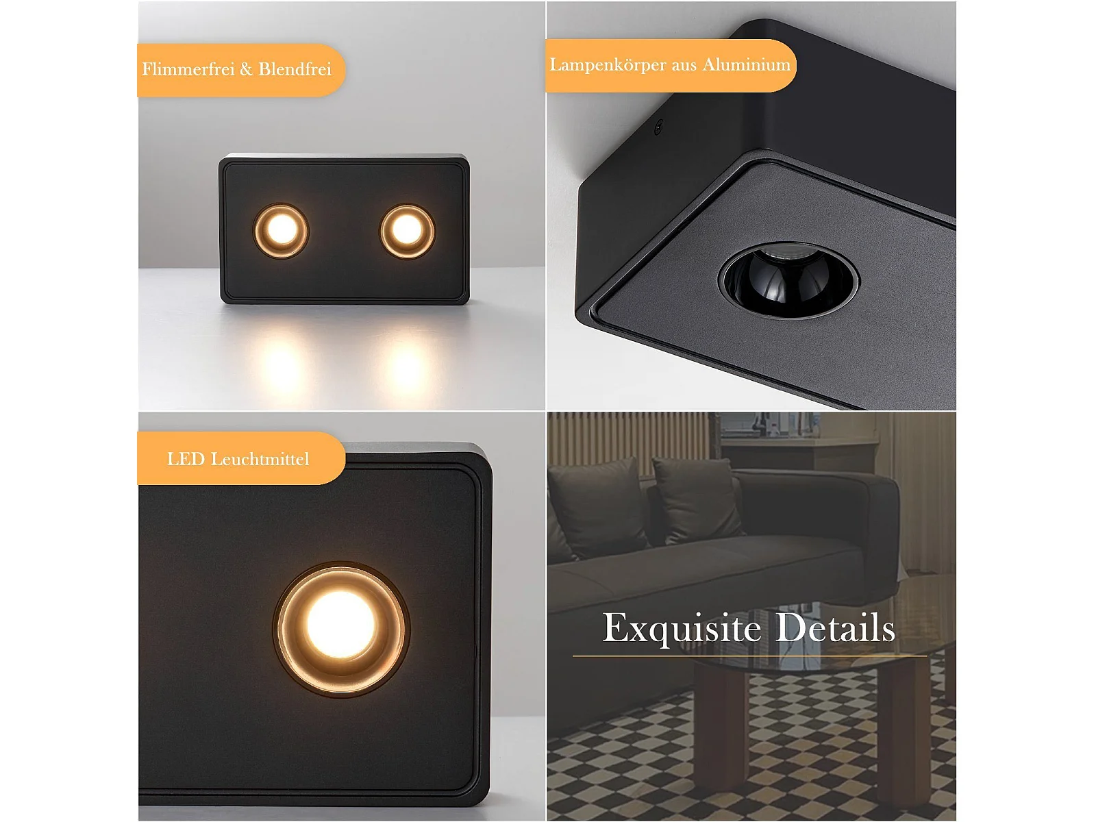 NETTLIFE 2 Spots de plafond LED en saillie noir 11W carrés blanc chaud pour salon couloir chambre salle à manger cuisine restaurant