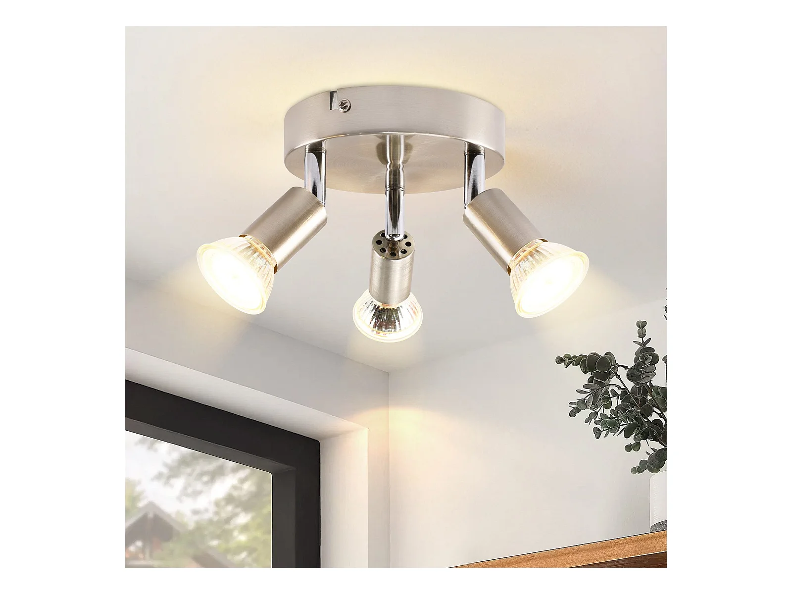 NETTLIFE 3 spots de plafond GU10 orientables à 350° en métal nickel rond, lampe moderne pour salon chambre cuisine salle à manger, max 3x25W