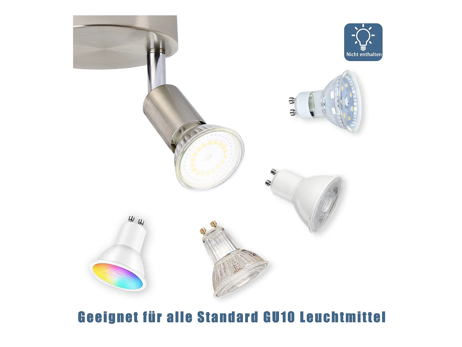 NETTLIFE 4 spots de plafond LED orientables à 350° GU10 en métal nickel, lampe moderne pour salon chambre cuisine salle à manger couloir max 4x25W