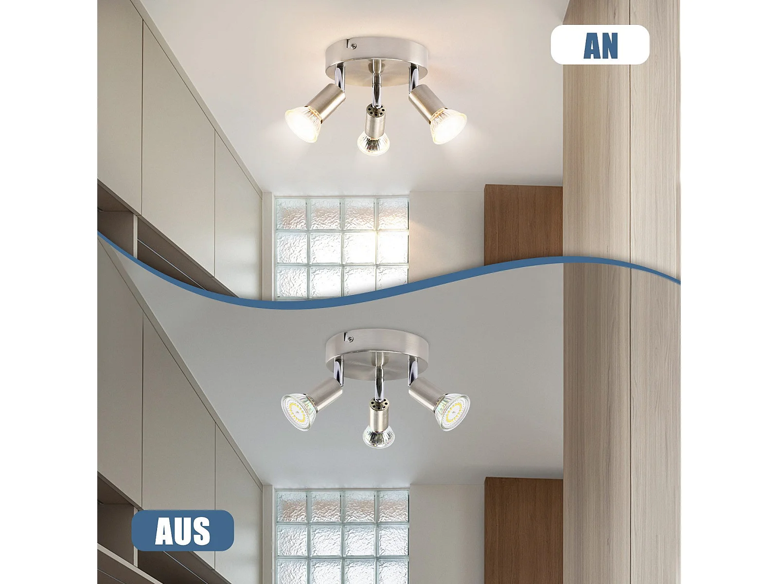 NETTLIFE 3 Spots de plafond nickel GU10 pivotants à 330°pour couloir salon chambre cuisine bureau spot mural moderne lampe de couloir