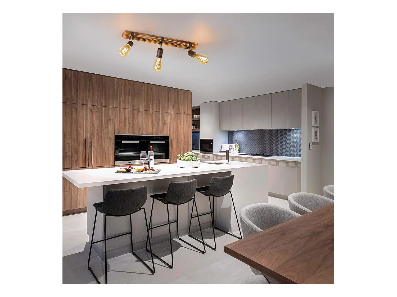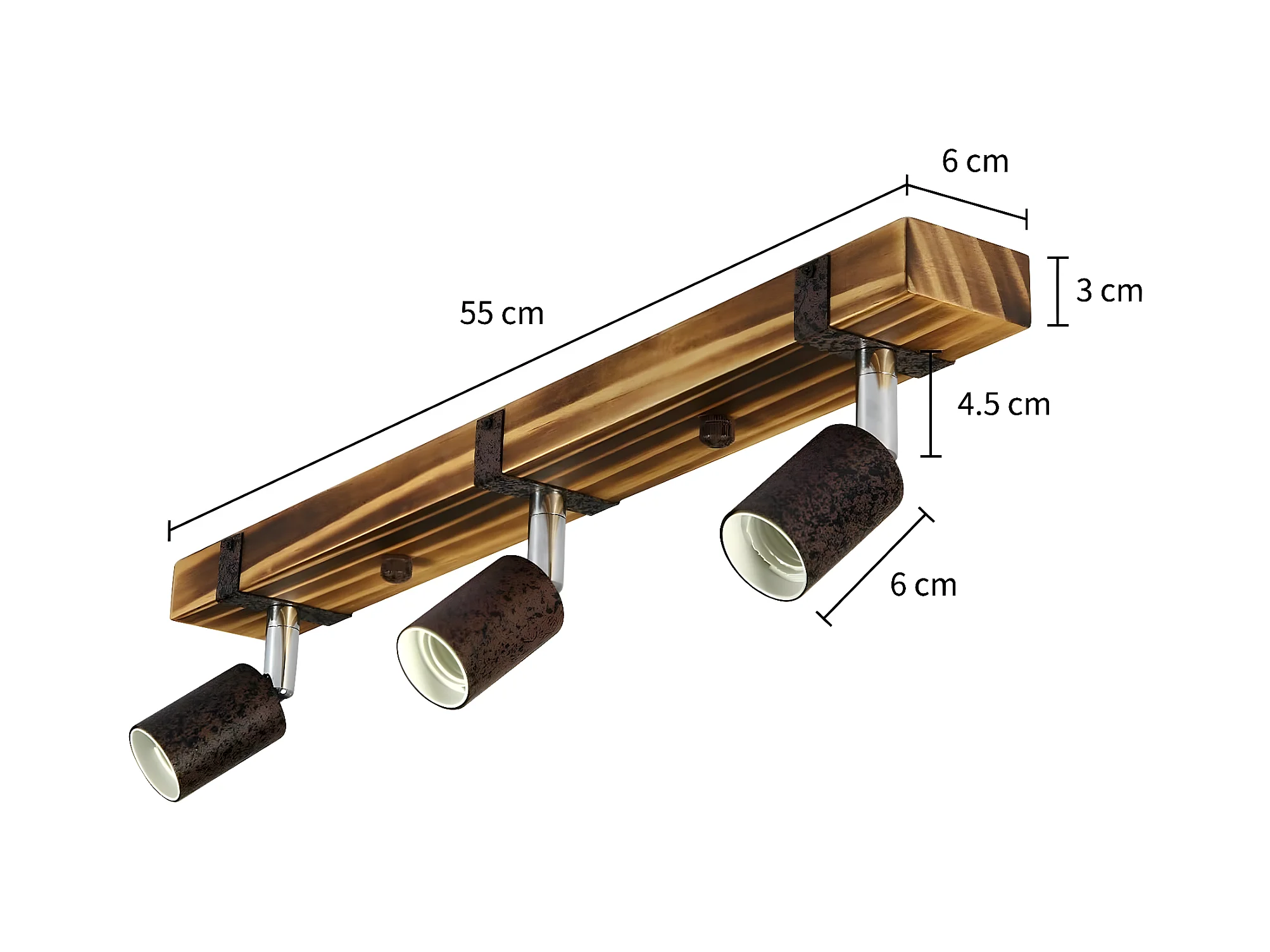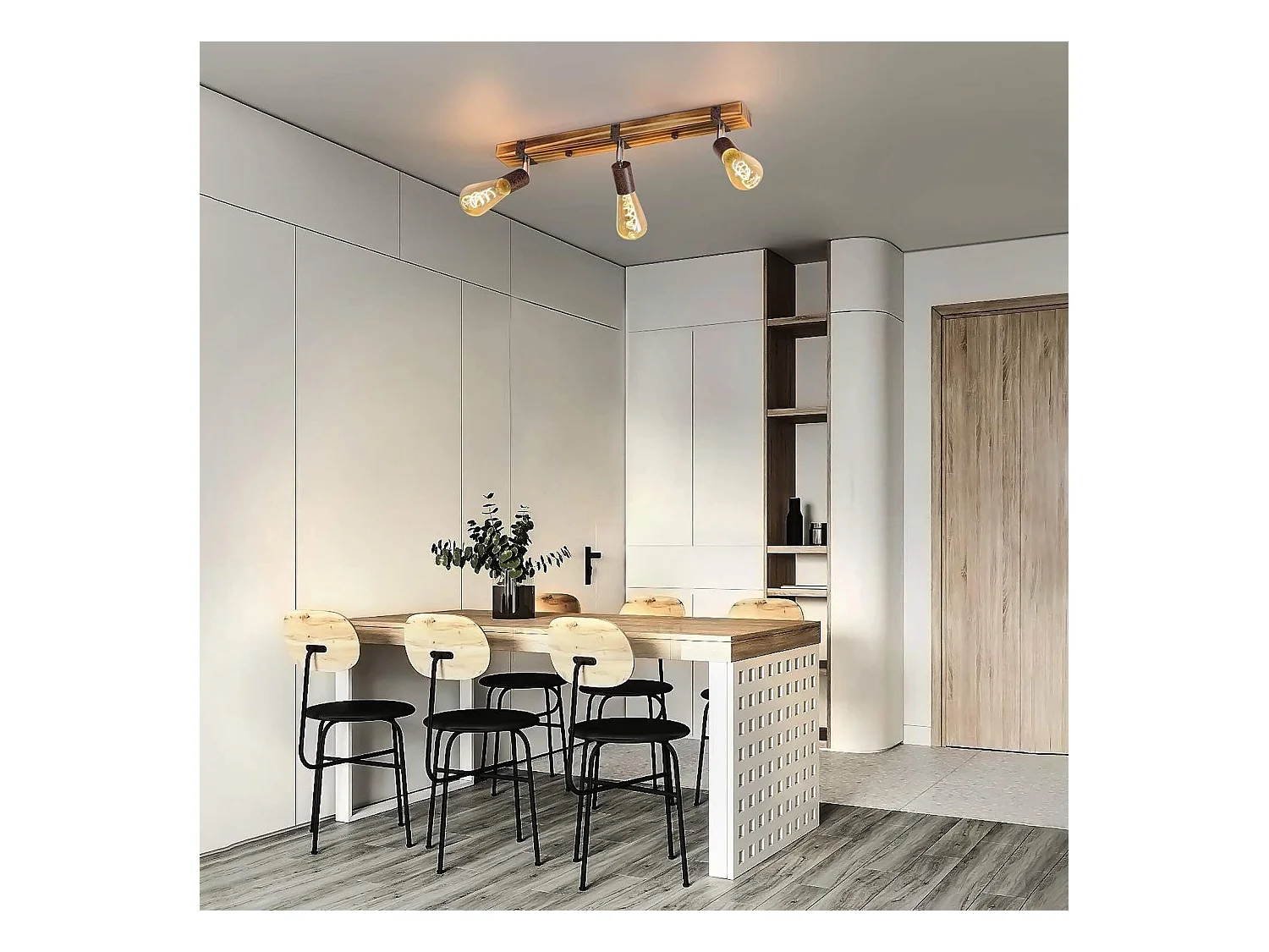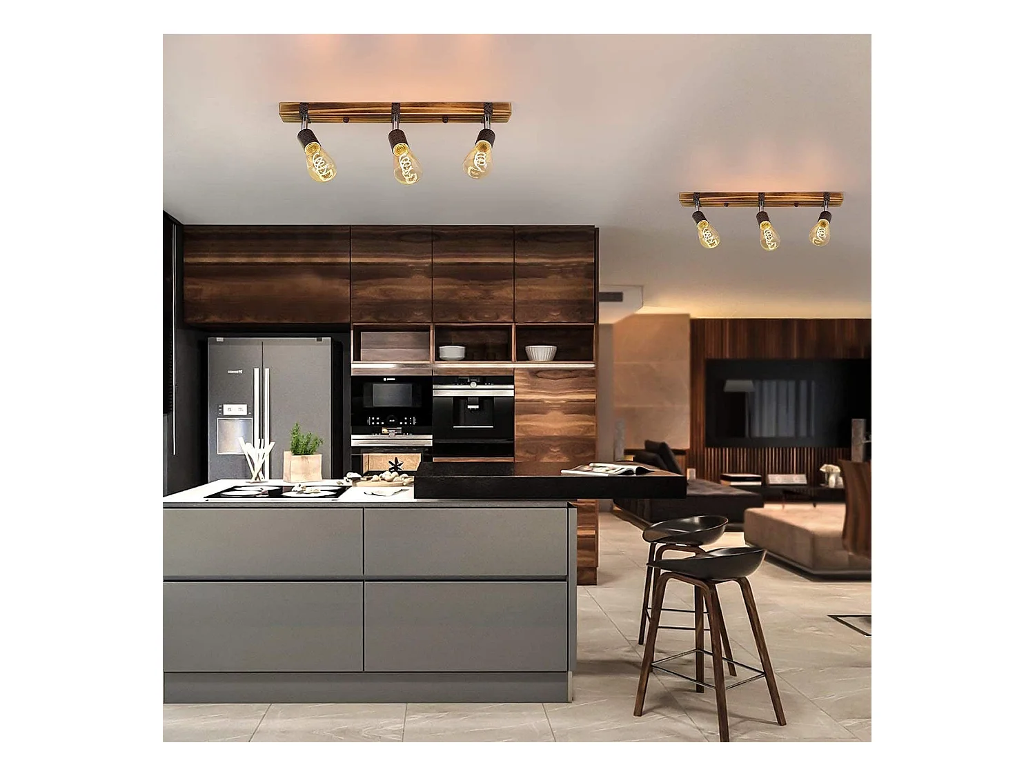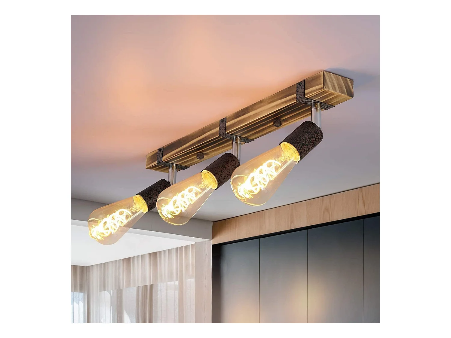 NETTLIFE 3 Spots E27, max.25 W 55 cm,Plafonniers vintage , spot en bois, avec lampe orientable et orientable pour couloir, cuisine, salle à manger