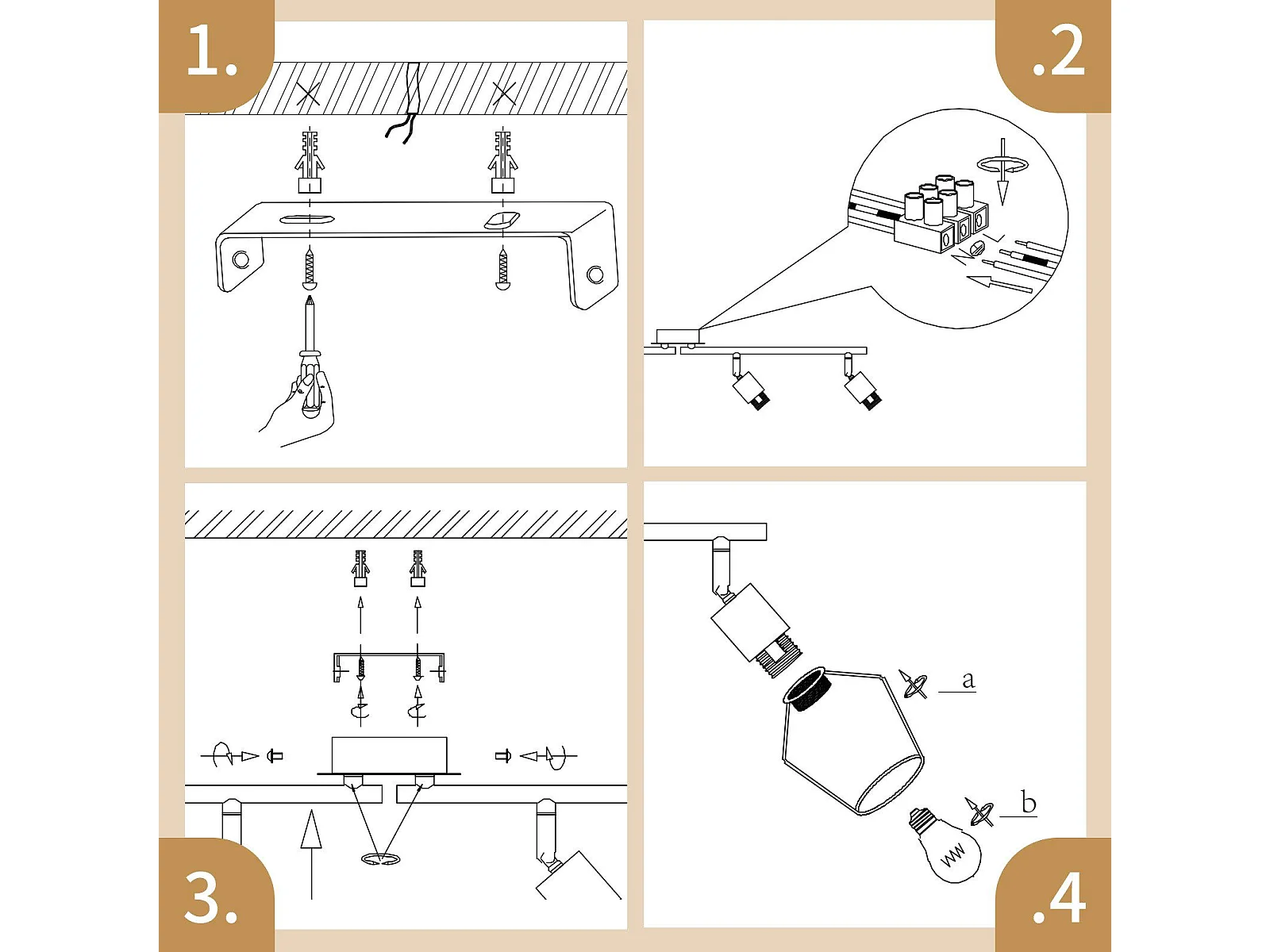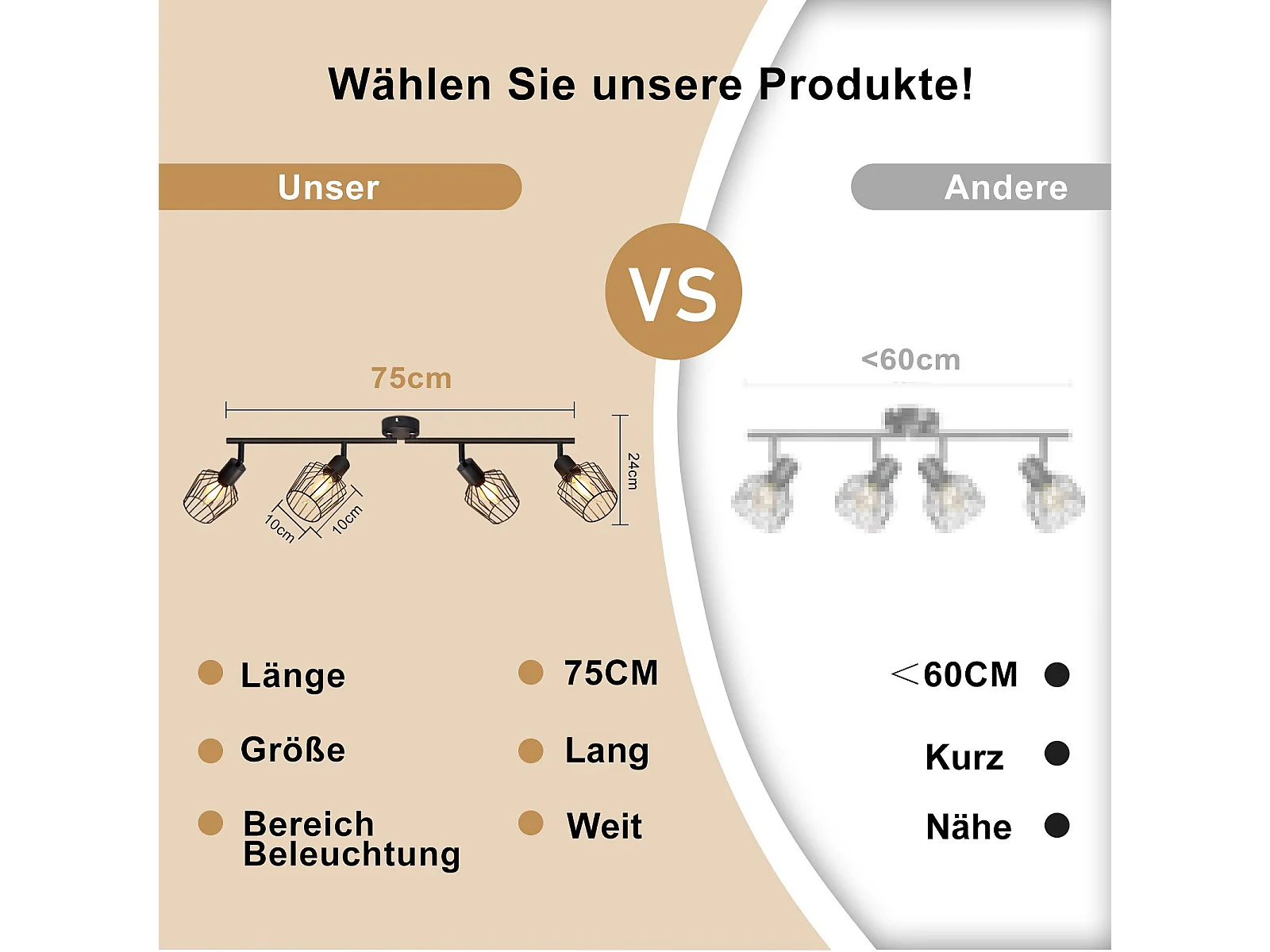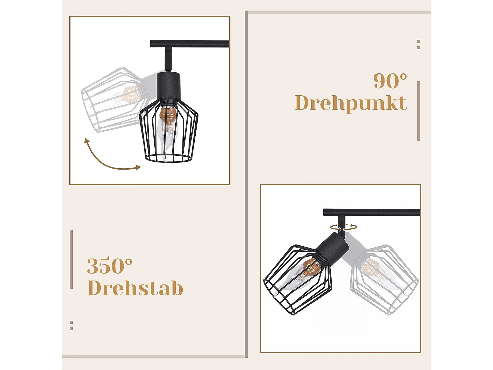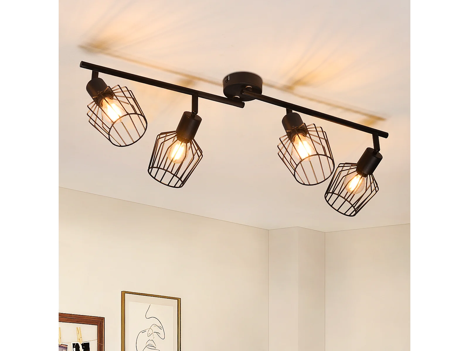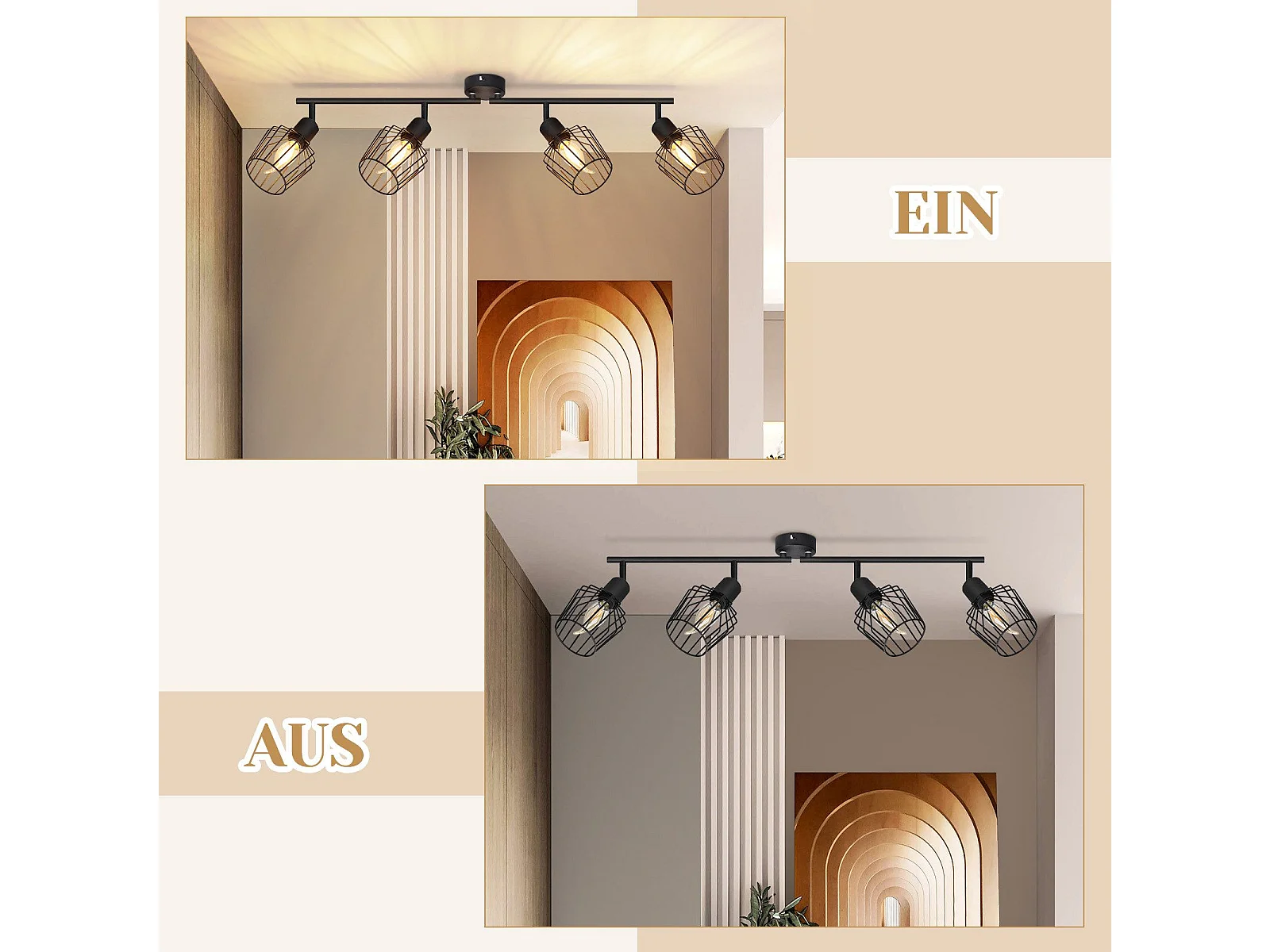 NETTLIFE 4 Spots de Plafond E14 - métal, lampe de couloir industrielle pivotante à 350°, applique murale pour couloir et salon,noir