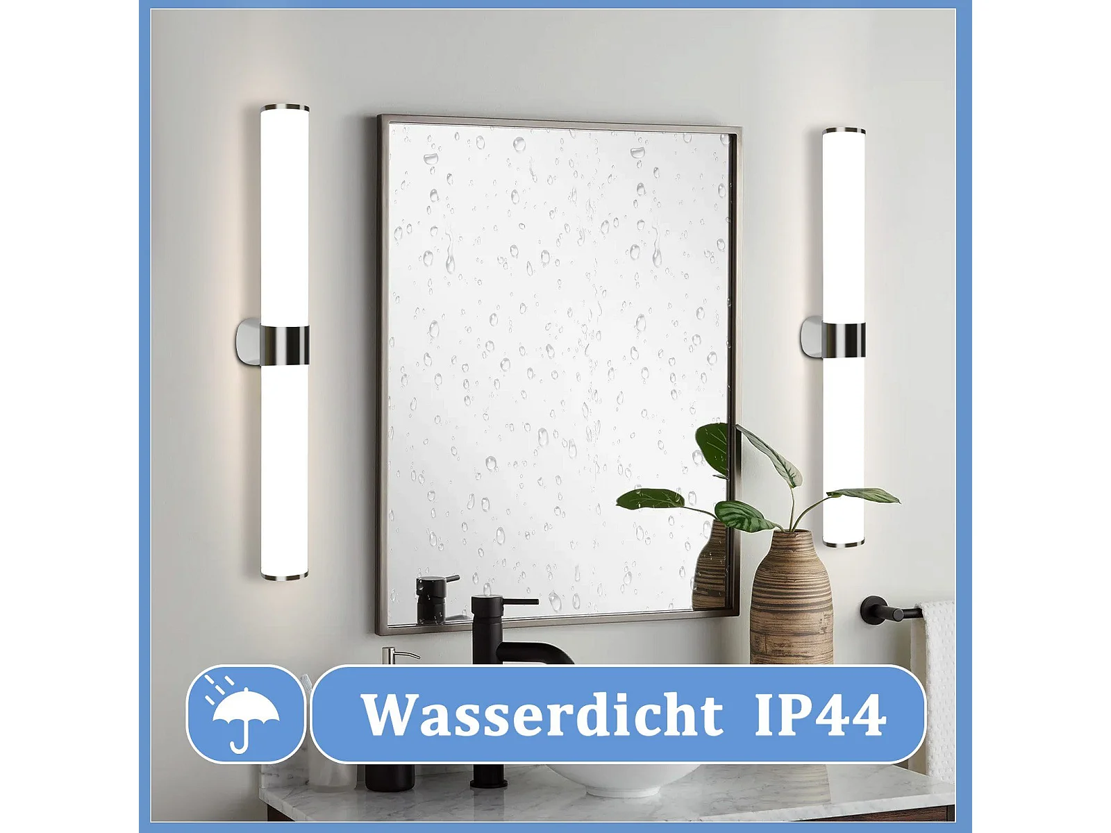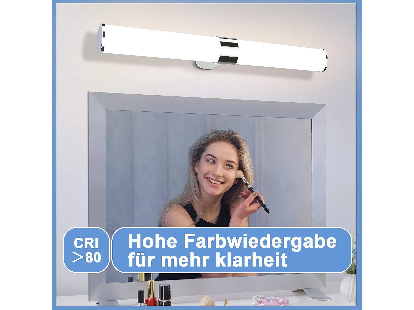 NETTLIFE Applique miroir LED 15W 60CM Chrome Etanche IP44 Blanc neutre 4000K Moderne