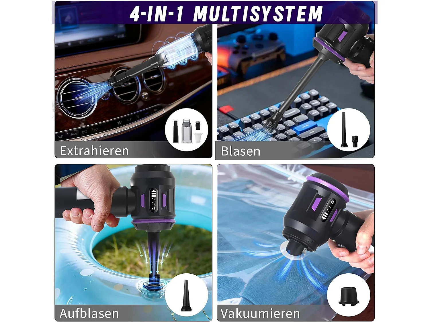 Nettlife Aspirateur à Main Sans Fil 17000Pa - Mini Aspirateur Voiture Puissant 4 en 1 - Moteur Brushless 3 Vitesses - Auto, Maison & Poils Animaux