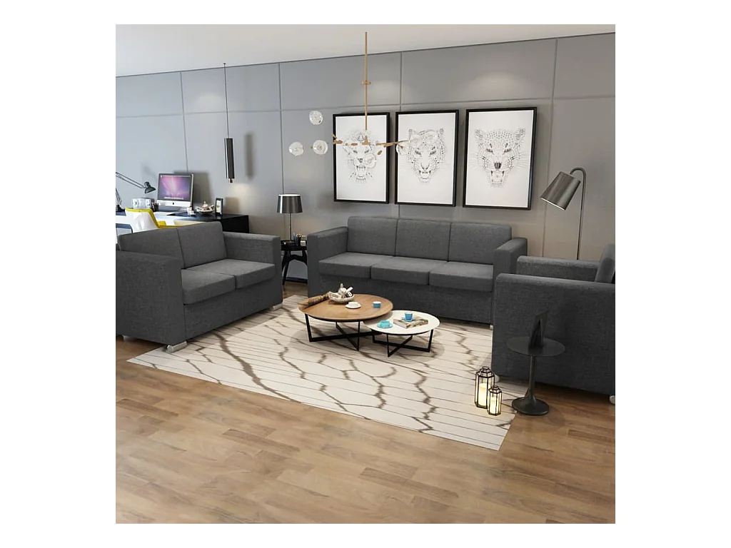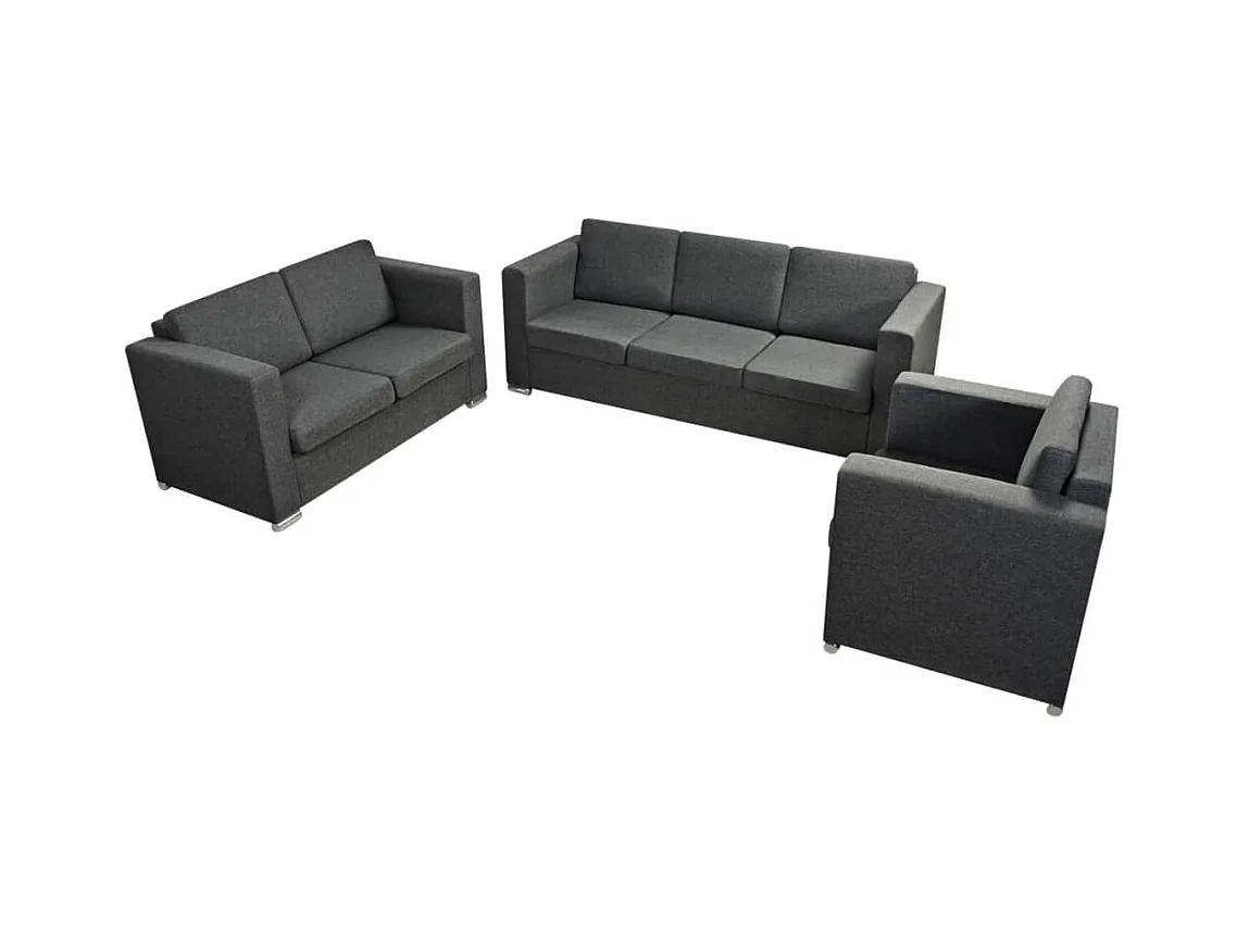 NETTLIFE Ensemble de canapés trois pièces Tissu Gris foncé