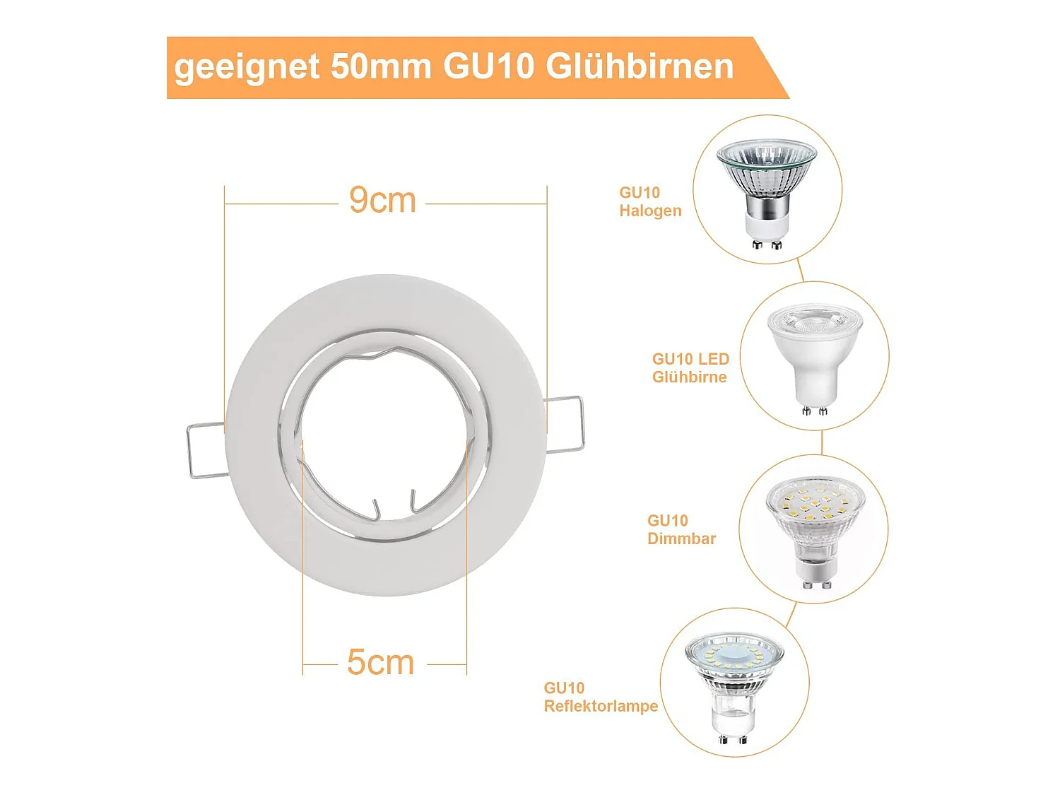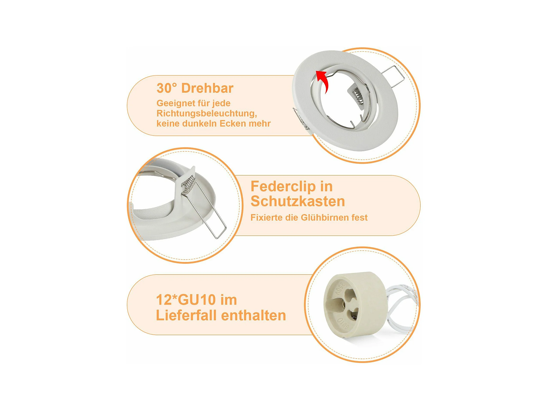 NETTLIFE Kit 12 Spots GU10 Cadre Encastrable Blanc Douilles 230 V 50 mm Métal Orientable 30° pour LED Halogène